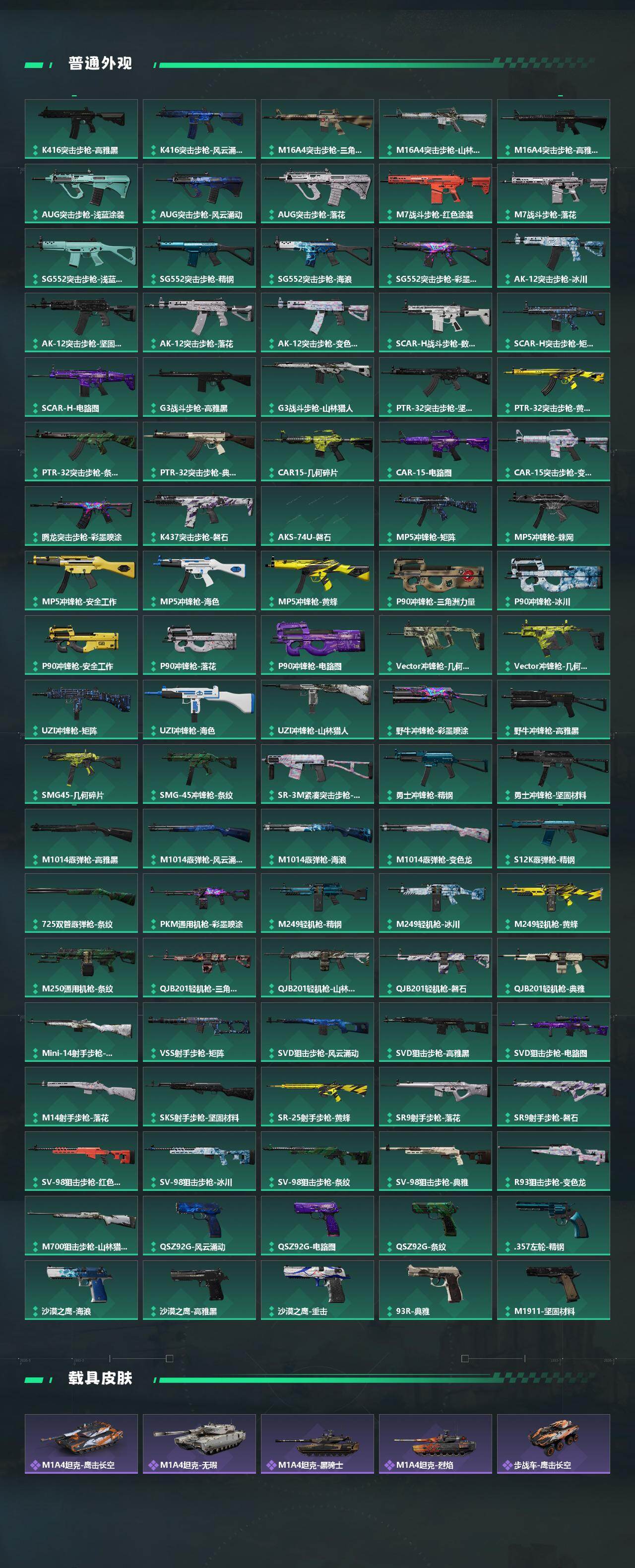 【干员外观】:红狼-蚀金玫瑰,骇爪-水墨云图,露娜-黑·天际线,威龙-凌霄戍卫,威龙-壮志凌云,威龙-飞虎,蜂医-送葬人·无题密令,无名-夜鹰,深蓝-不破誓约,红狼-电锯惊魂,露娜-金牌射手