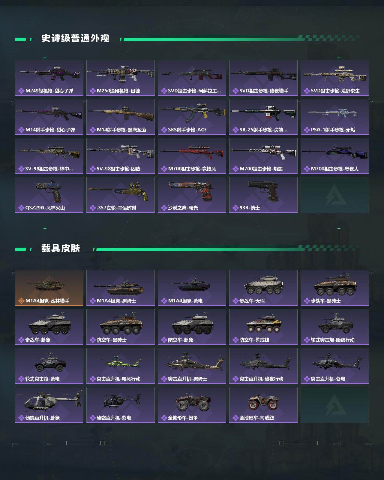 【近战皮肤】:近战-赤枭,近战-怜悯,近战-影锋,近战-黑海,近战