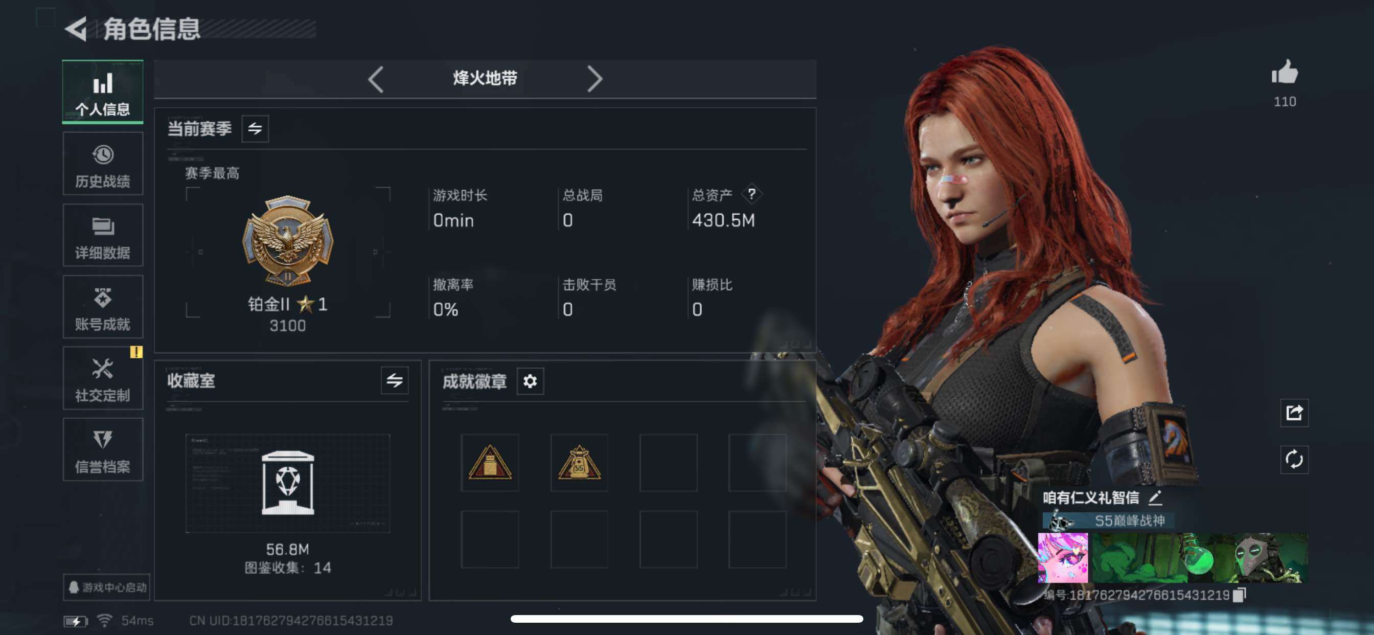 【Q区三端互通】【无二次】YXz2656-特勤处:仓库9级/靶场6级/训练中心7级-总资产435m-哈夫币149M-烽火等级:60级