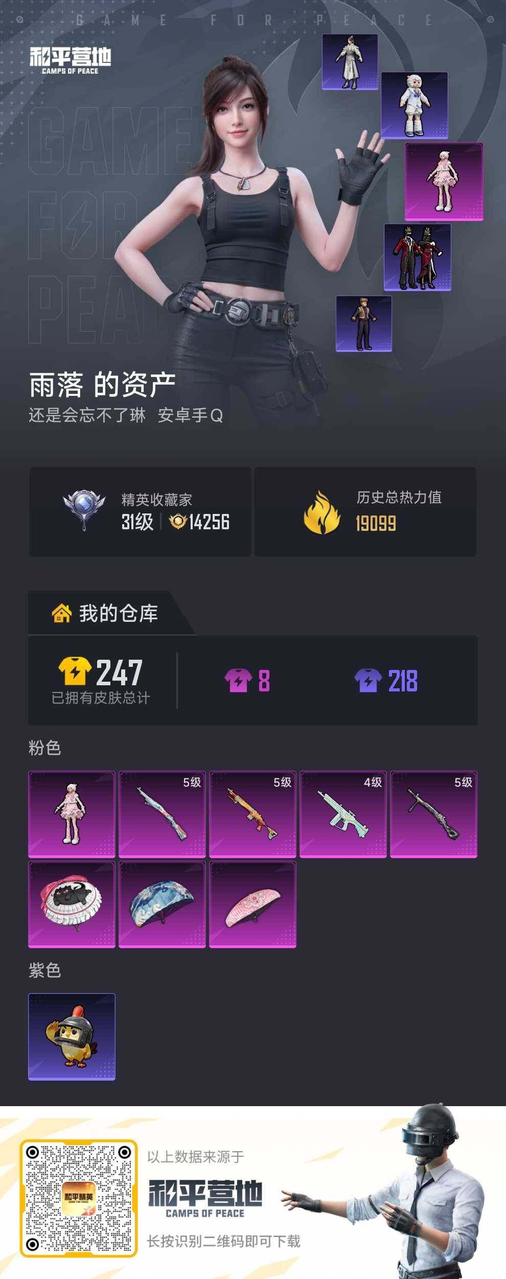 【特价出售/店主推荐】安卓 手Q-1粉装-4特效枪-0载具-0粉色飞行器-19099热力值-2王牌印记-44套装-76枪皮