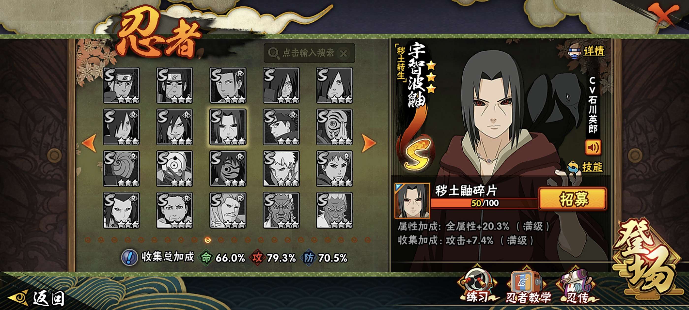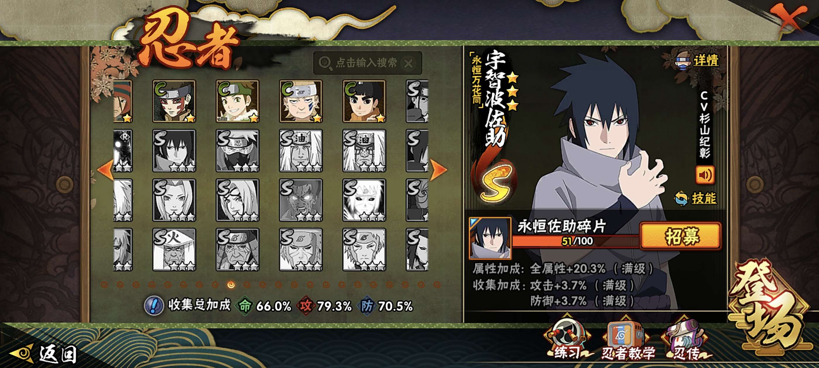 侠影佐助带皮肤有黑绝,10s老古董,忍法帖已开,永恒佐助50片,秽土鼬50片,大筒木71片,理财已开