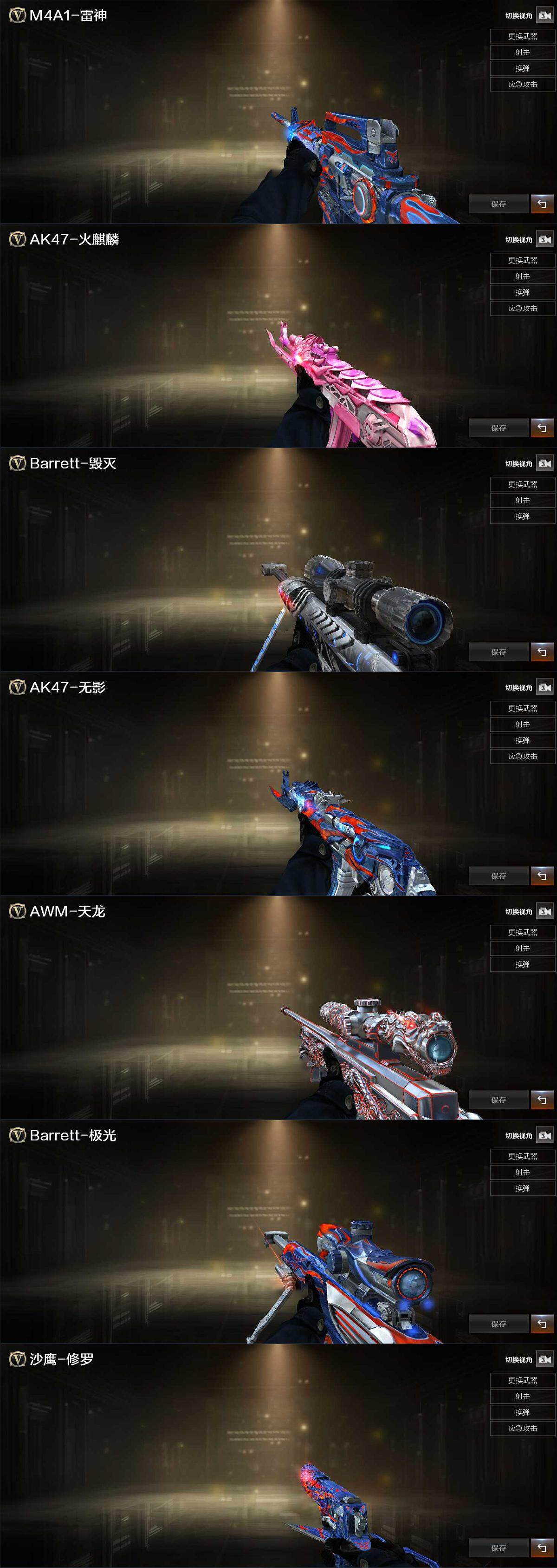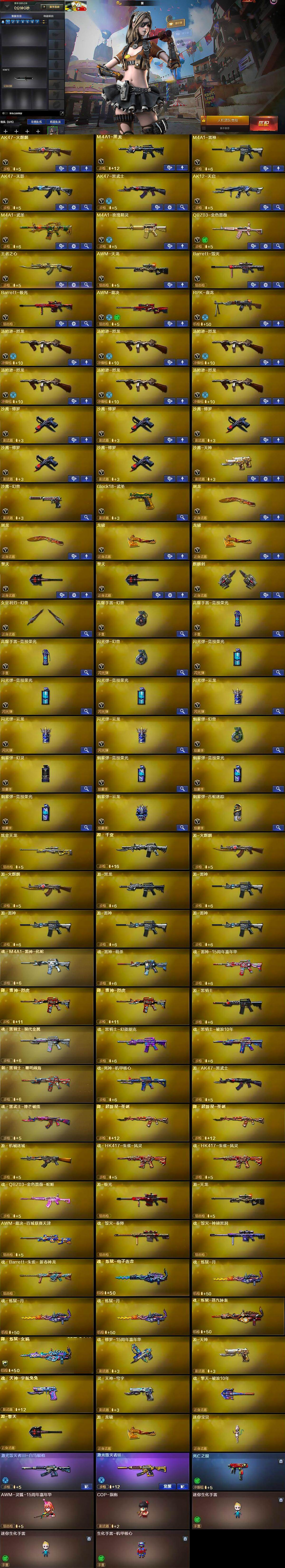 【热门武器】:QBZ03-金色蔷薇,死亡之眼,汤姆逊-烈龙*6,RPK-盘龙,沙鹰-修罗*5,高爆手雷-幻兽