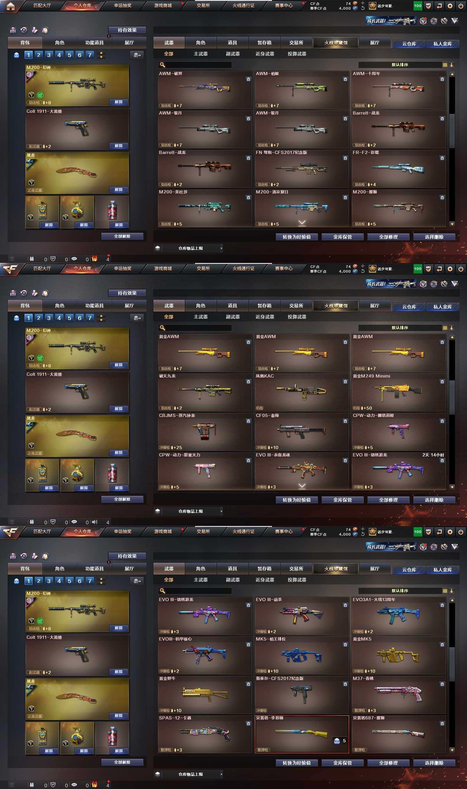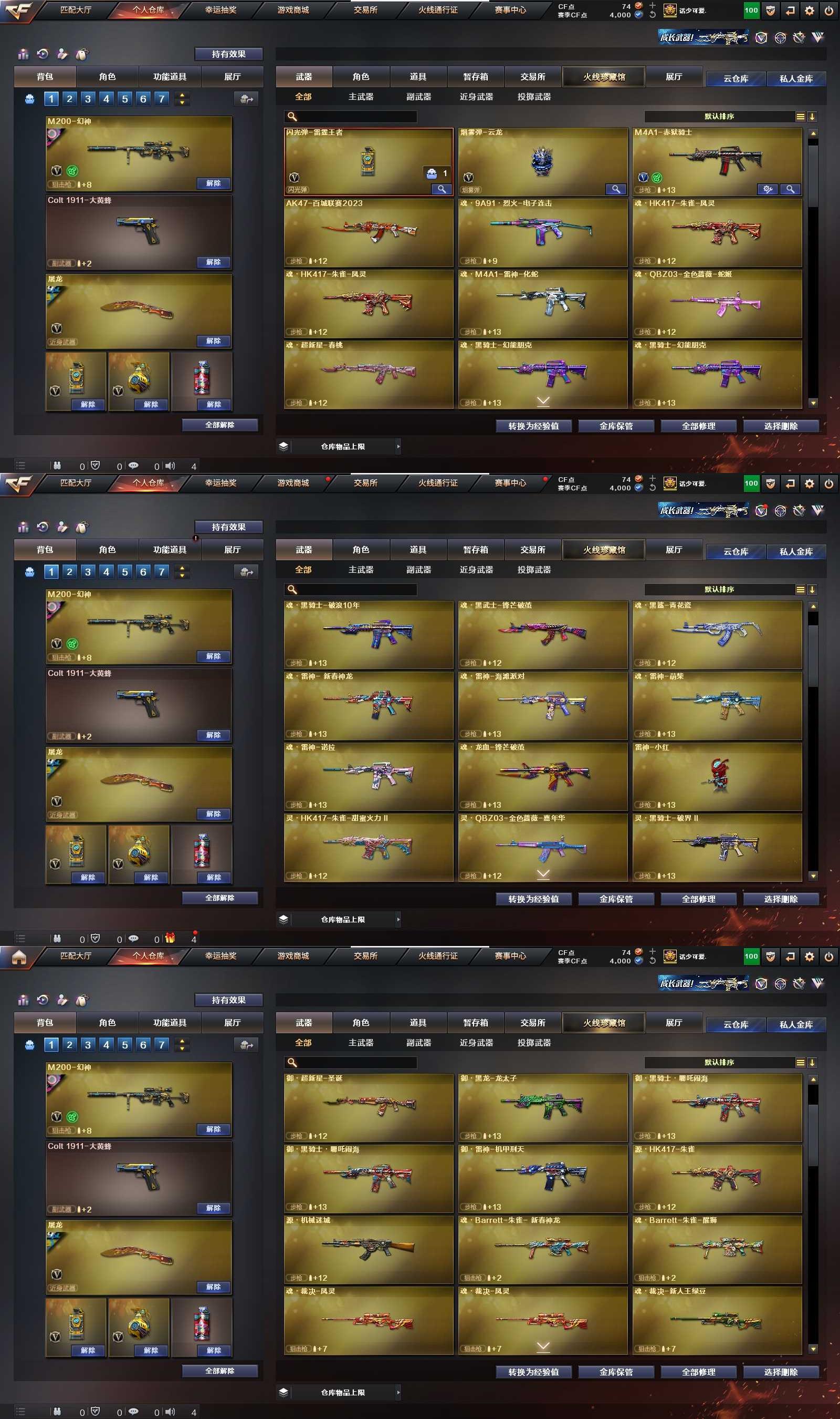 PX_2007131-浙江一区 可二次 M200-幻神 (宠儿+N9-2022MVP+电流骇客) Scar-白虎 M4A1-雷神 (荣耀之魄) QBZ03-金色蔷薇 黑武士-锦绣游龙 雷神小红 AK47-B十周年 黄金AK 高爆手雷-云龙 闪光弹-云龙 烟雾弹-云龙 闪光弹雷霆王者觉醒版 *2 【王者武器】 高爆手雷雷霆王者 *2 【副武器类型】 Cfcolt1911大黄蜂 【近身武器类型】 屠龙 【稀有角色】 王者-魅影 防() 奇洋探员 乔伊教练 蜀雪 潘多拉X 暗夜X 铁骑荣耀 超级护目镜
