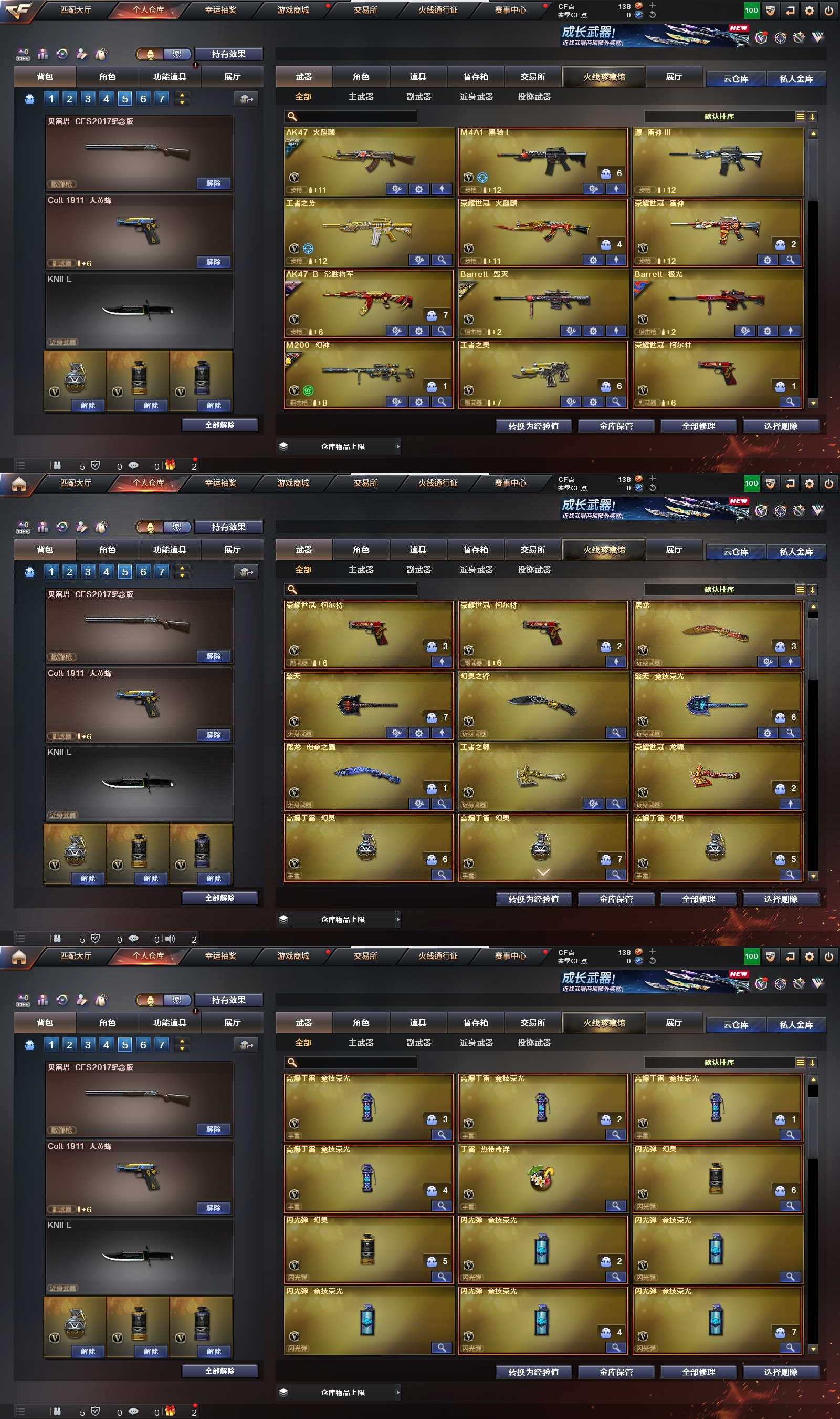 PX_2313570-安徽一 可二次 53V4王者 M200-幻神 (AG冠军) 荣耀世冠-柯尔特 传说影煞 荣耀世冠-火麒麟 荣耀世冠-雷神 Barrett-毁灭 Barrett-极光 王者之势觉醒版 M4A1-黑骑士 AK47-火麒麟 无影神兵利器 AK47-麒麟 AK常胜将军 AK身先士卒 AKB-战士 Barrett暗月传说 *2 QBZ03-吕布 高爆手雷竞技荣光 *4 闪光弹竞技荣光 *7 烟雾弹竞技荣光 *6 高爆手雷幻灵 *3 闪光弹幻灵 *2 烟雾弹幻灵 *3 手雷-热带奇洋