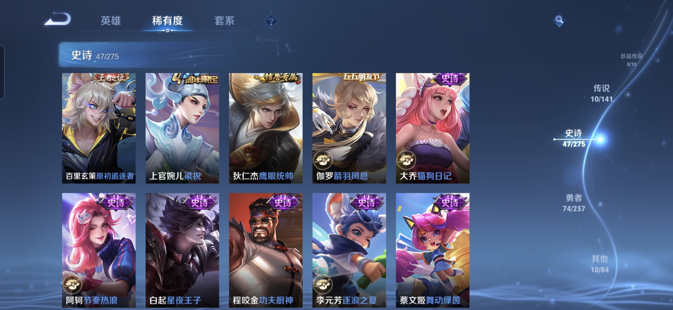 MWZ105211【v5 10传说】安卓Q-141皮肤-127英雄 【传说皮肤】 神树通天 鸣野蒿 愿照·九州拓 黄金狮子座 超时空战士 地狱之眼 冠军飞将 绛天战甲 胖达荣荣 云鹰飞将 【史诗皮肤】 星界战将 百相守梦 器灵·浮梦炉 谧流熔炉 电玩小子 地狱燃心 线条小狗 谪仙醉月 青焰无极 苍威无极 王牌新星 聚星闪耀 江河有灵 决胜大满贯 百解令 漠中幻影 顽岩魄 万灵启世 化蝶舞 热力回旋 舞动绿茵 拒霜思 功夫厨神 魅力维加斯 猫狗日记 鹰眼统帅 圣诞恋歌 箭羽风息 鬼剑武藏 水晶猎龙