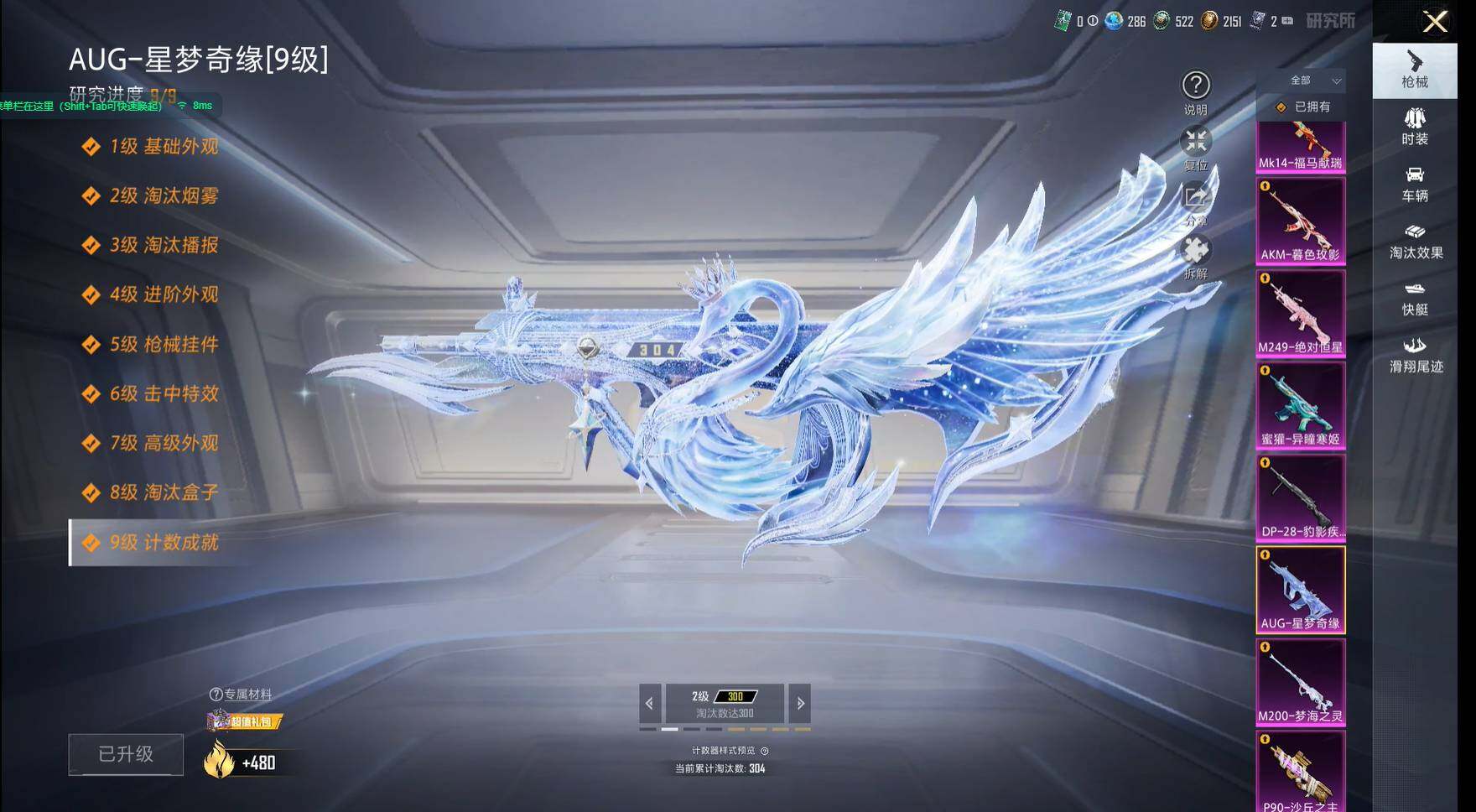 【粉色枪皮等级】:AKM-暮色玫影(三级),AUG-星梦奇缘