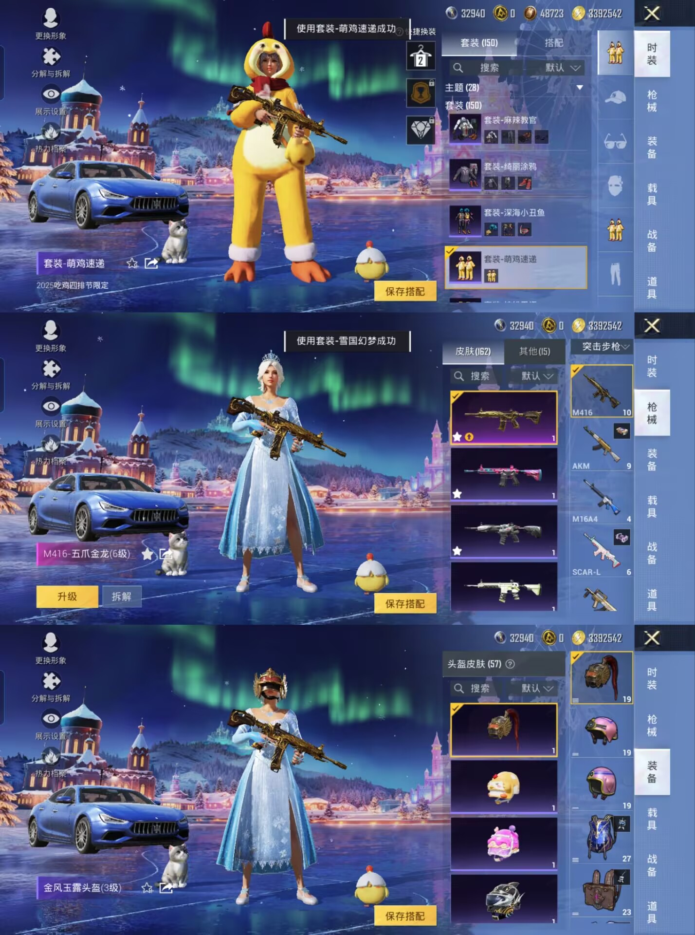 【网络热度最高素材女号 1载具5粉装4特效 雪国幻梦 深海小丑鱼 暗影哥特 神秘黑猫 冰川特警】安卓Q-1载具5粉装4特效枪17热门150套装162枪皮 53504热力值 6印记 历史超级王牌5星 【1载具】 玛莎拉蒂蓝色 【5粉装】 蝶舞迷情 雪国幻梦 木曜青龙 金曜白虎 守护骑士 【4特效枪】 M416-五爪金龙 (6级) SCAR-L-锦绣绵绵 (5级) Kar98K-巳巳如意 (2级) D