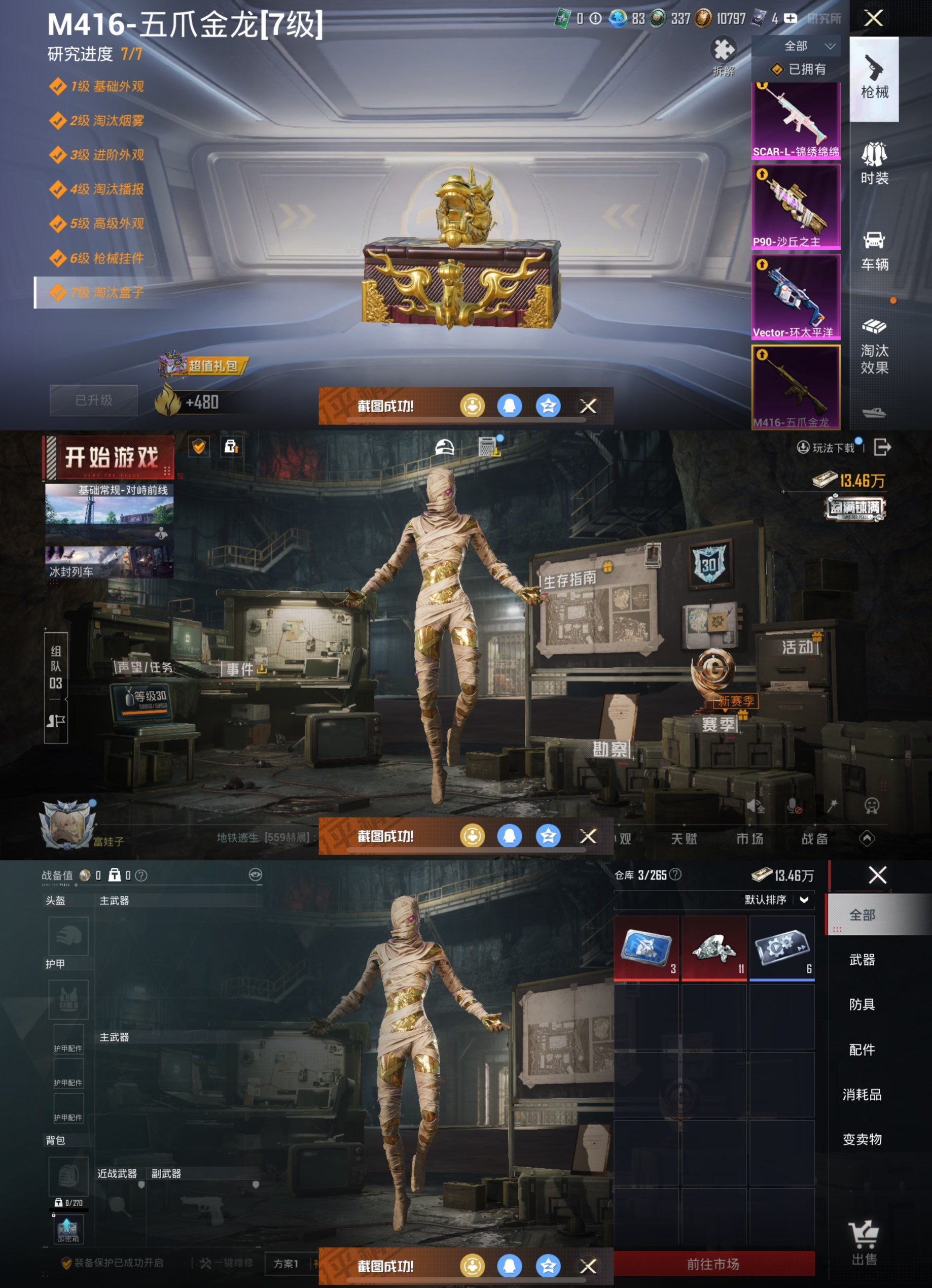 1红装3稀有2载具13粉装11特效枪15热门200套装274枪皮 98627热力值 16印记 历史超级王牌23星