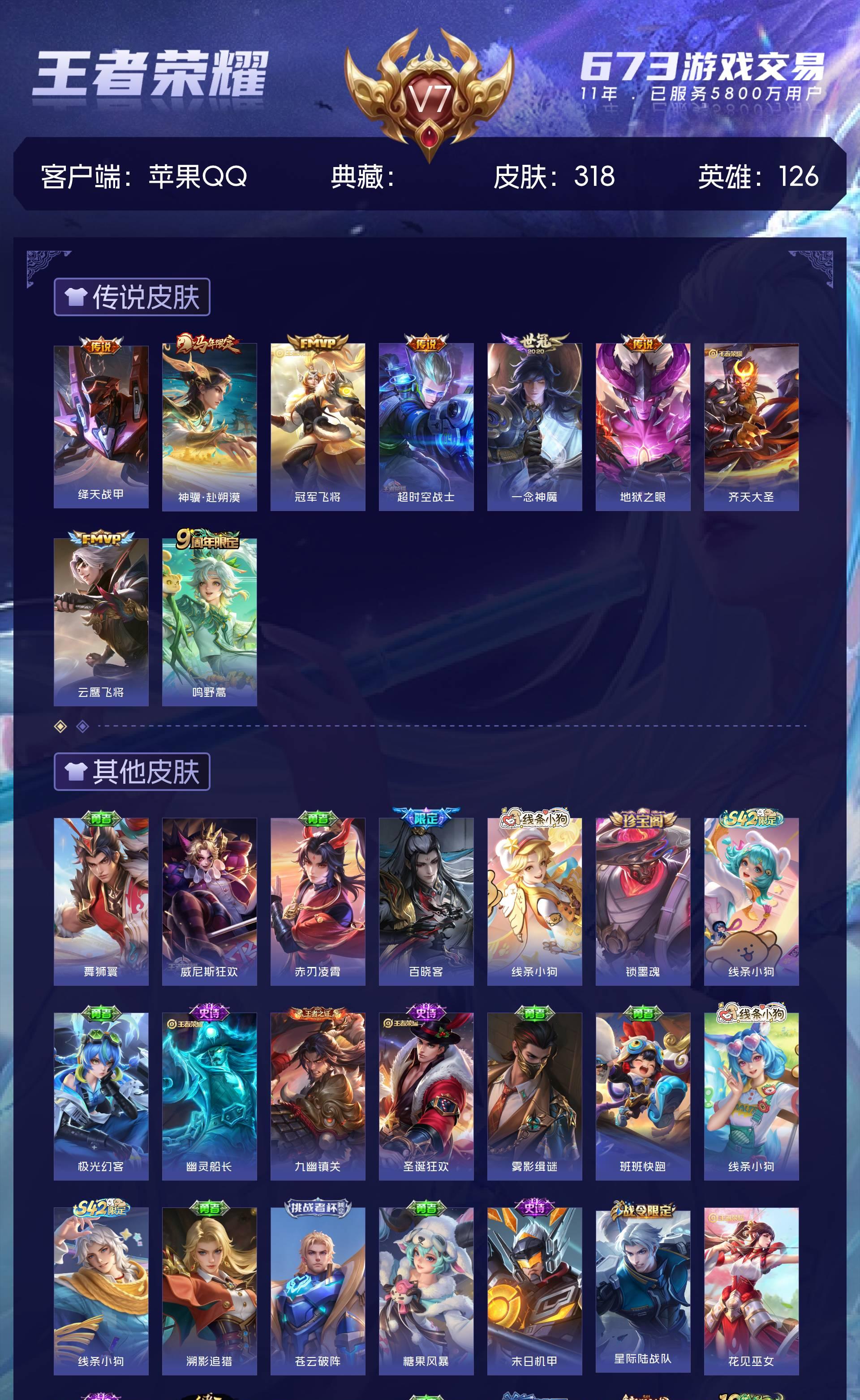 V7 皮肤318 英雄126 绝世王者 星传说2 传说9 其他皮肤315