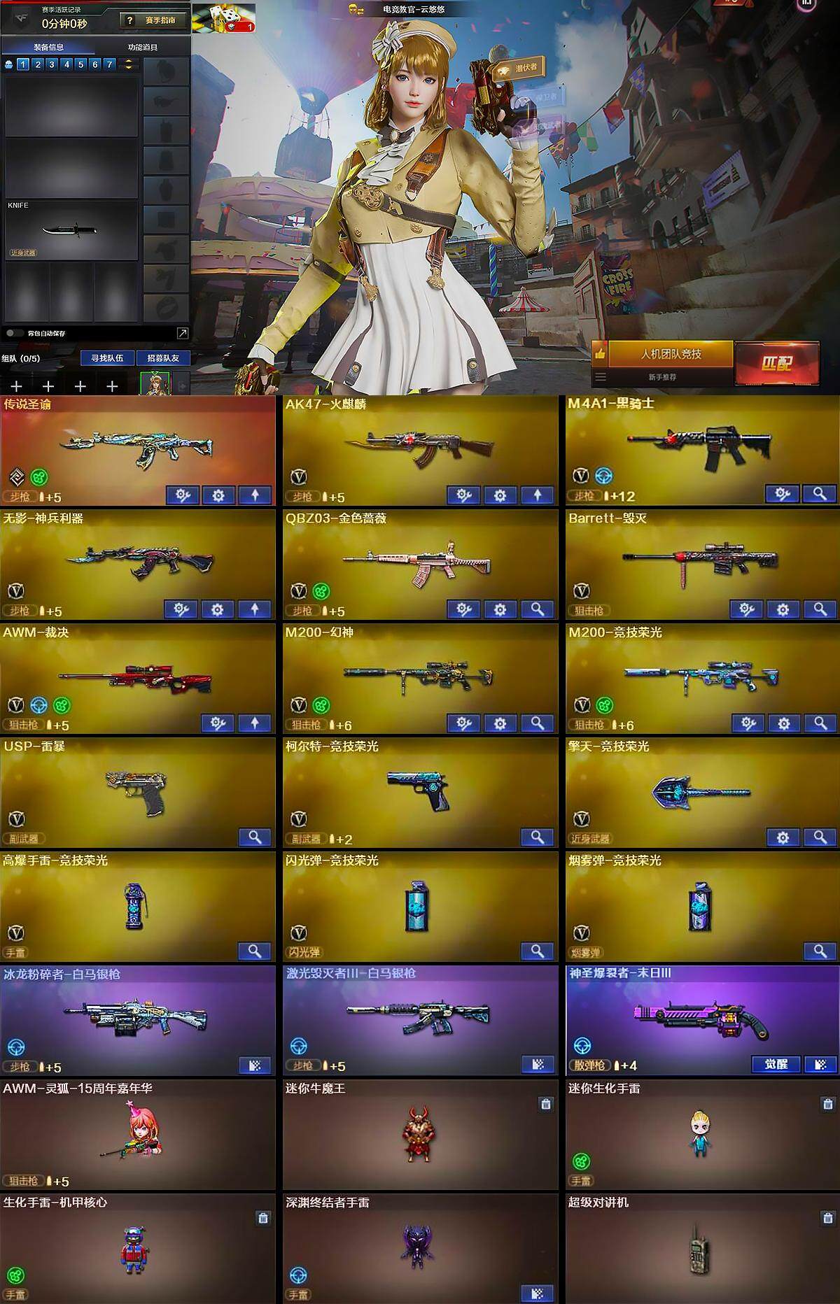 【热门武器】:传说圣谕,QBZ03-金色蔷薇,M200-幻神,M200-竞技荣光,M4A1-黑骑士,USP-雷暴