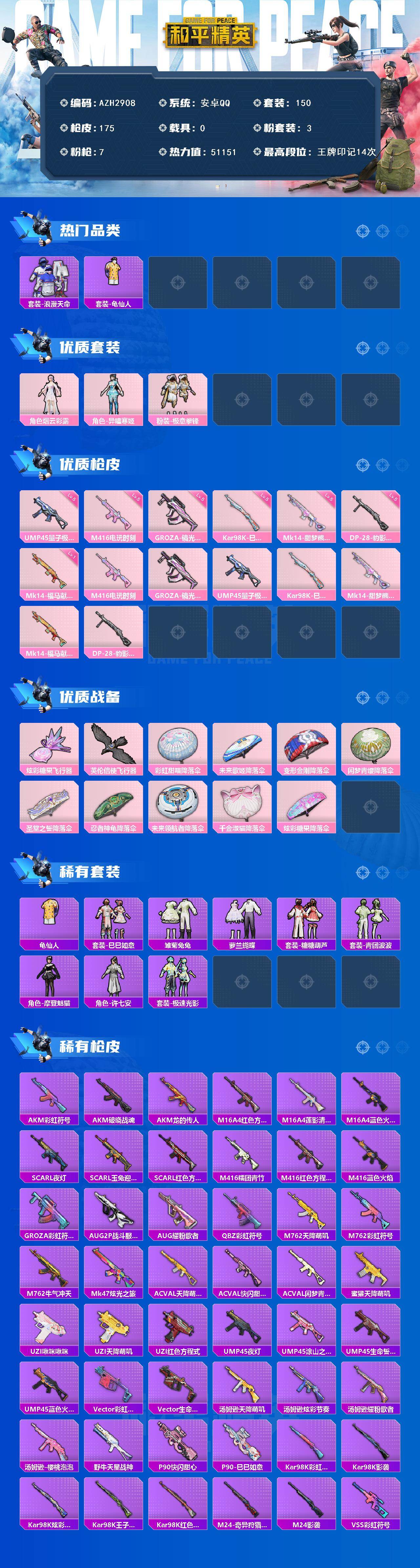 【AZH2908】安卓 手Q【异瞳寒姬 摩登魅猫 浪漫天命】3粉装-7特效枪-0载具-2粉色飞行器-51151热力值-14王牌印记-150套装-175枪皮