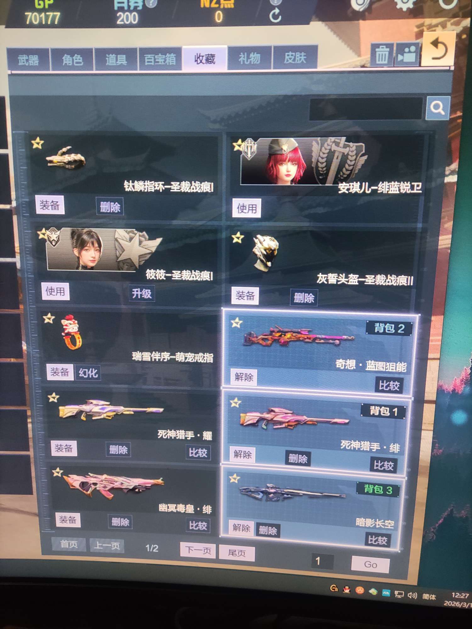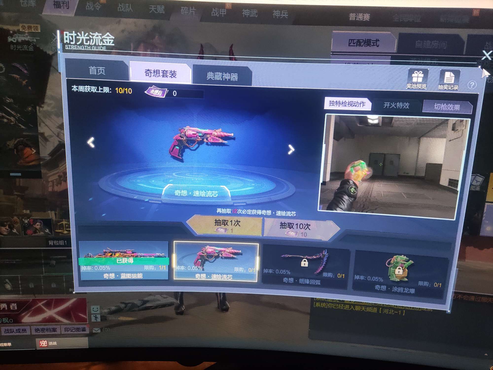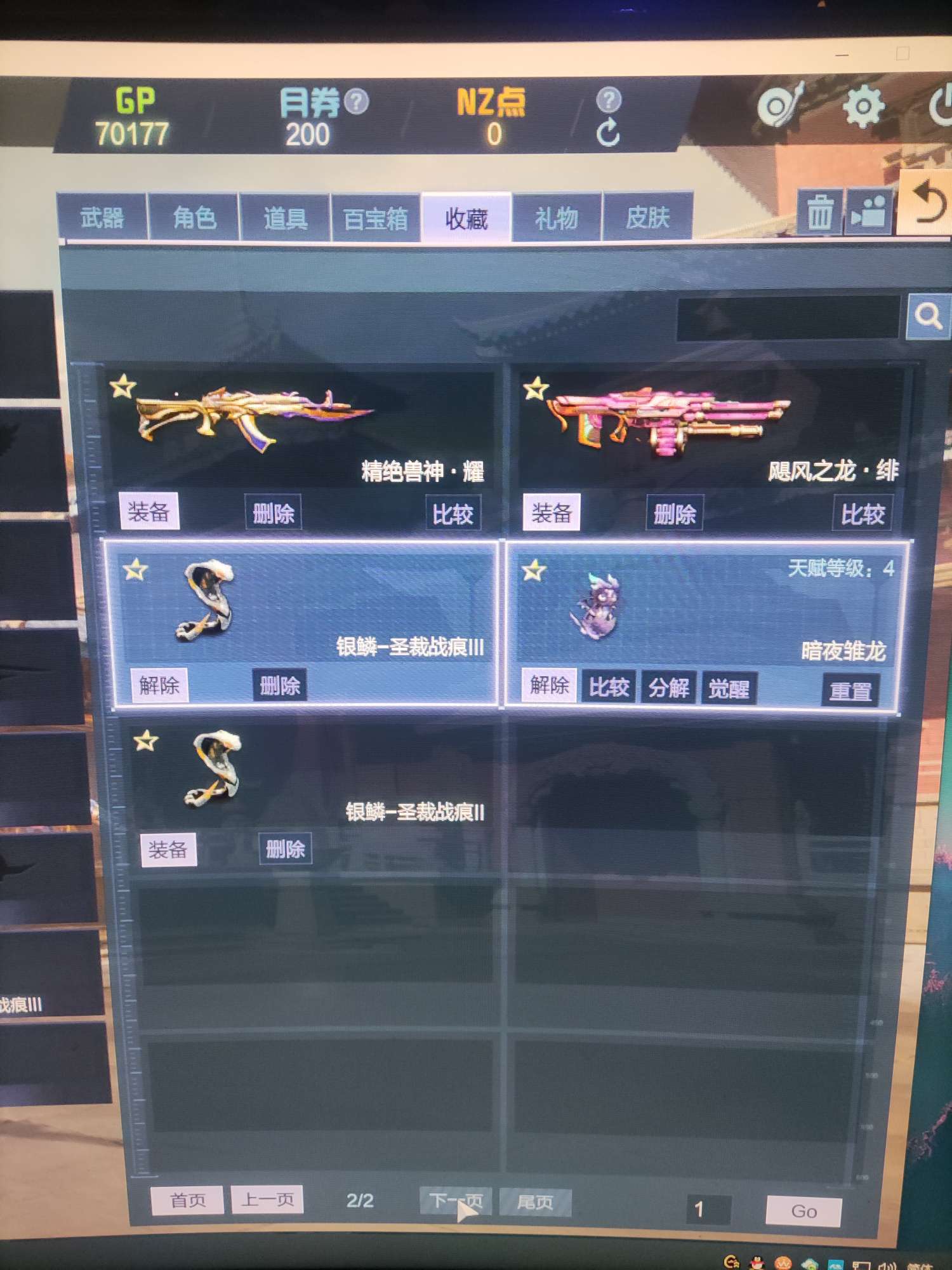 奇想套就有有主武器,能放v和右键,典藏神器兽神没有绯,毒皇没有耀其他都有