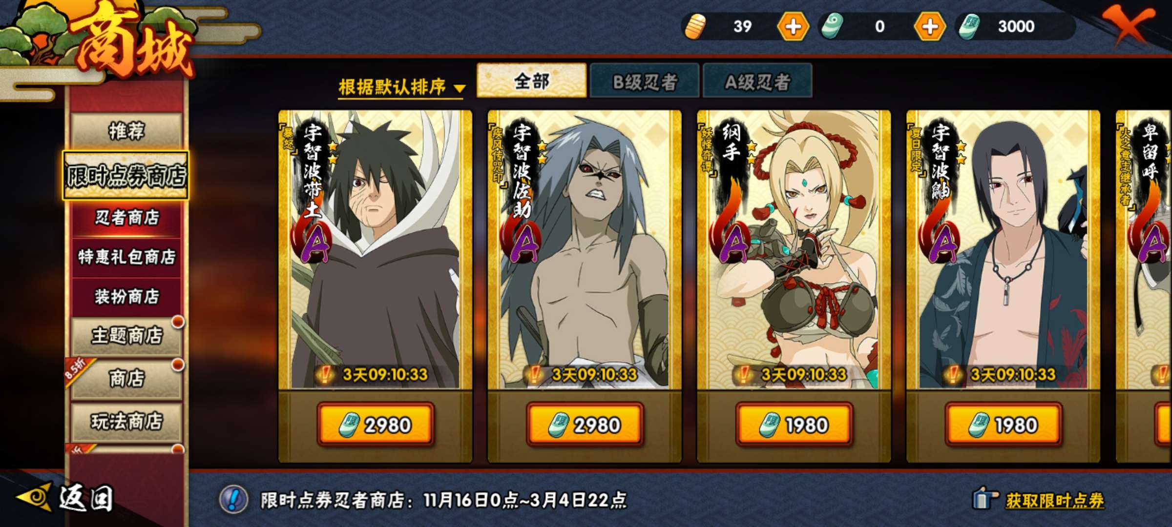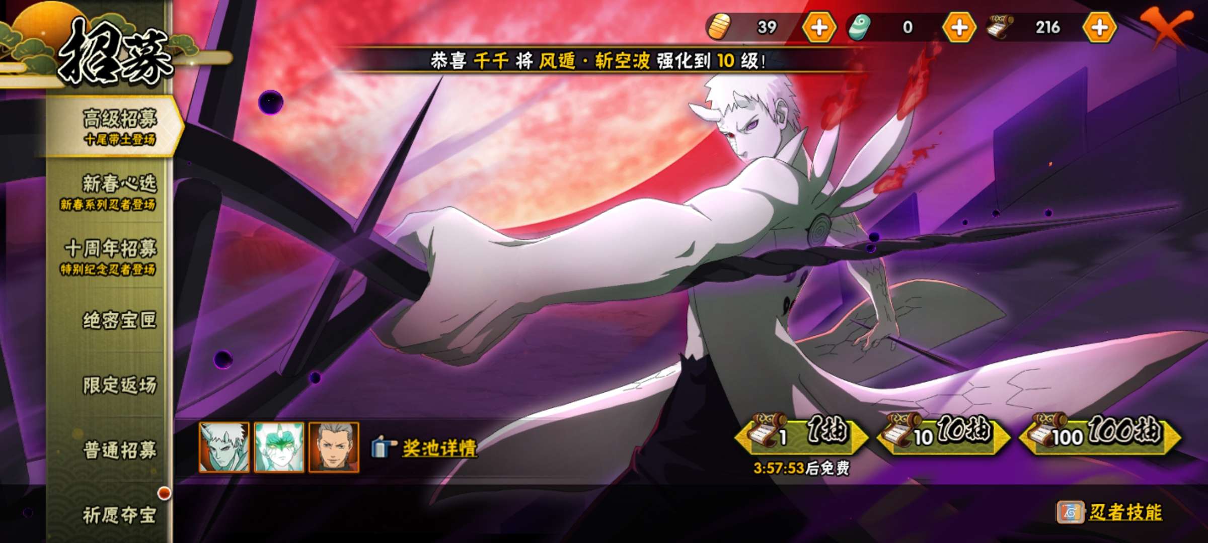 3S阴水门74,十尾带土68片,216高招卷轴,12蓝卷,3000限时点卷。