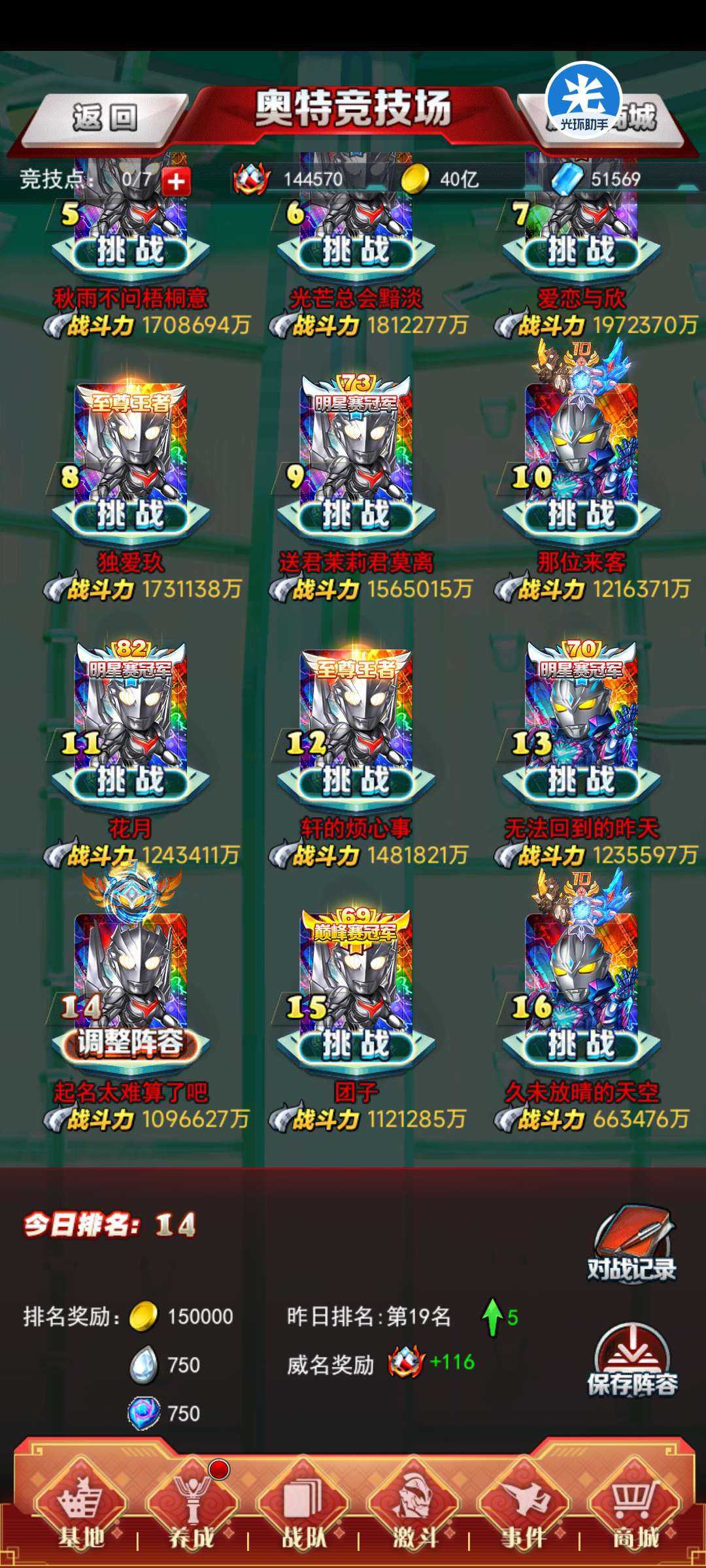 竞技场排名: