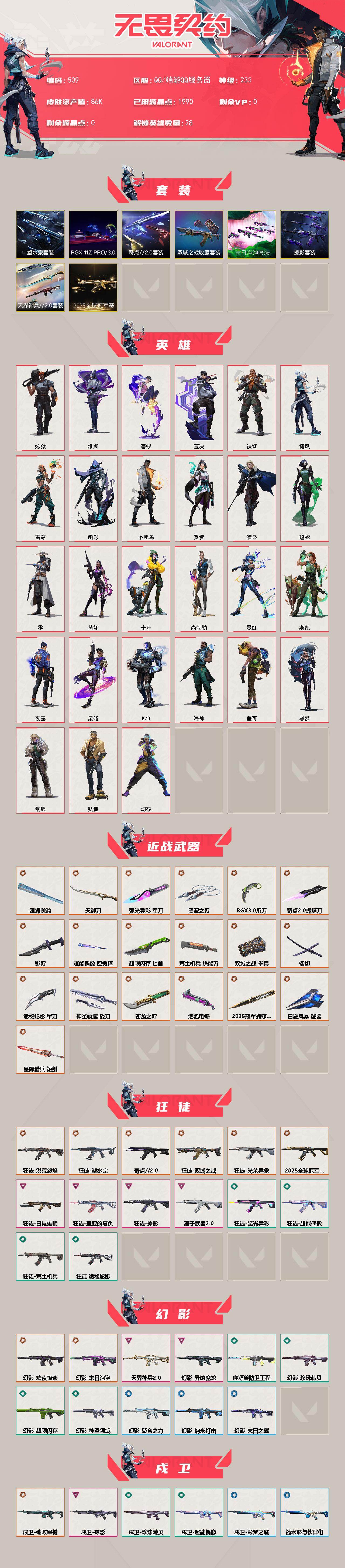 【英雄】:幻棱,炼狱,维斯,暮蝶,钛狐,壹决,铁臂,捷风,雷兹,幽影,不死鸟,贤者,猎枭,蝰蛇,零,芮娜,奇乐,尚勃勒,霓虹,斯凯,夜露,星礈,K/O,海神,盖可,黑梦,钢锁