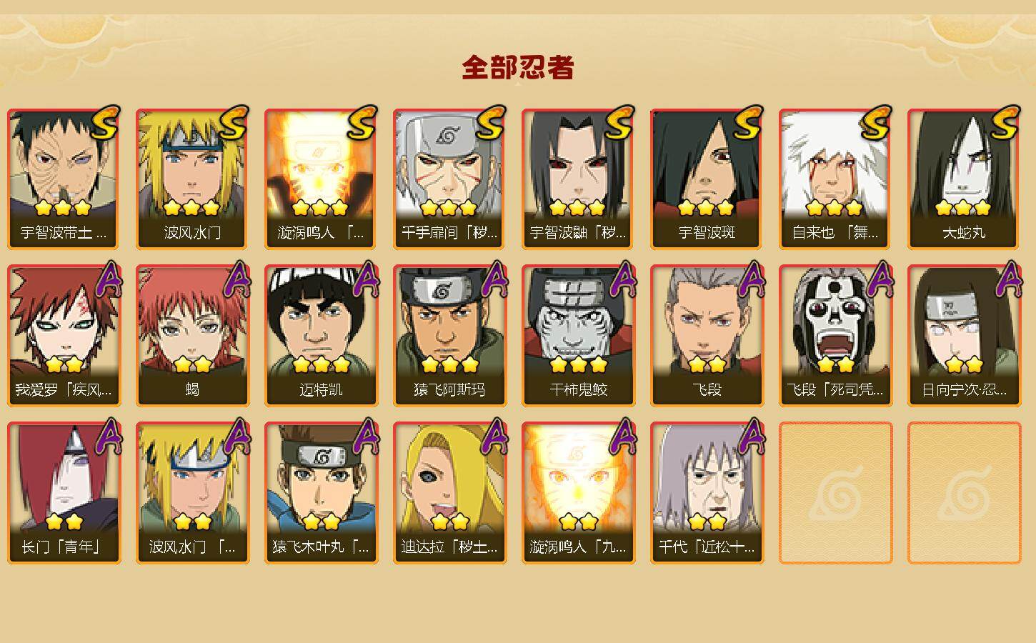 【HYN5341】V7/战力512W/S忍8/A忍14/通灵兽13/舞之豪杰-自来也/忍界大战-日向宁次/疾风传-我爱罗/死司凭血-飞段/秽土转生-宇智波鼬/青年-长门/忍界大战-宇智波带土/宇智波斑/秽土转生-迪达拉/蝎/飞段/波风水门/九喇嘛连结-漩涡鸣人/大蛇丸/3星迈特凯/九尾查克拉-漩涡鸣人/秽土转生-千手扉间/3星猿飞阿斯玛/3星干柿鬼鲛/猿飞木叶丸/近松十人卫-千代/青年-波风水门