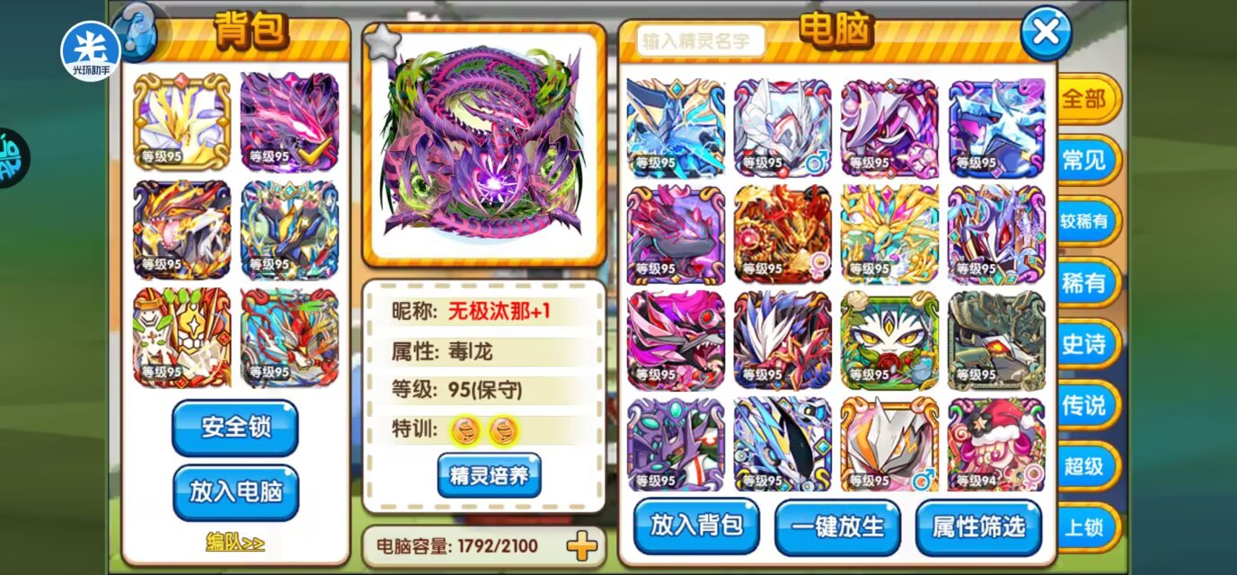 果盘双端【安卓苹果都能玩】,95满级贵宾3,带170万钻石无敌养老号。22红一特二,净化永恒鹿,新专属闪Z,月核水泡洛兹玛,新专大毒龙,新专闪古拉,新专梦魇黑梦,电龙,斗龙,破军手环苍响,新专闪凤,新专奥特曼等各种小闪氪金宠。道具包一堆没开。