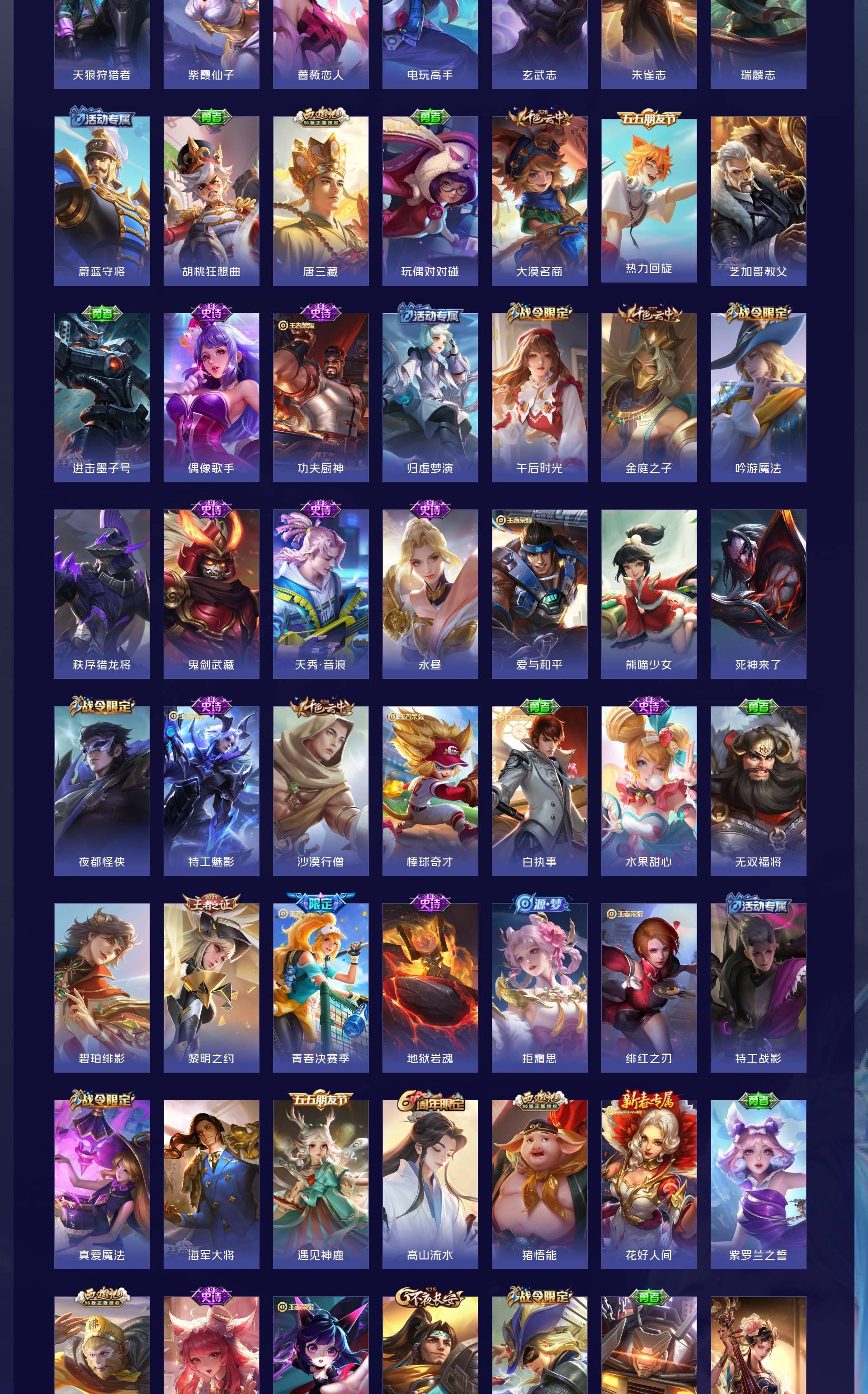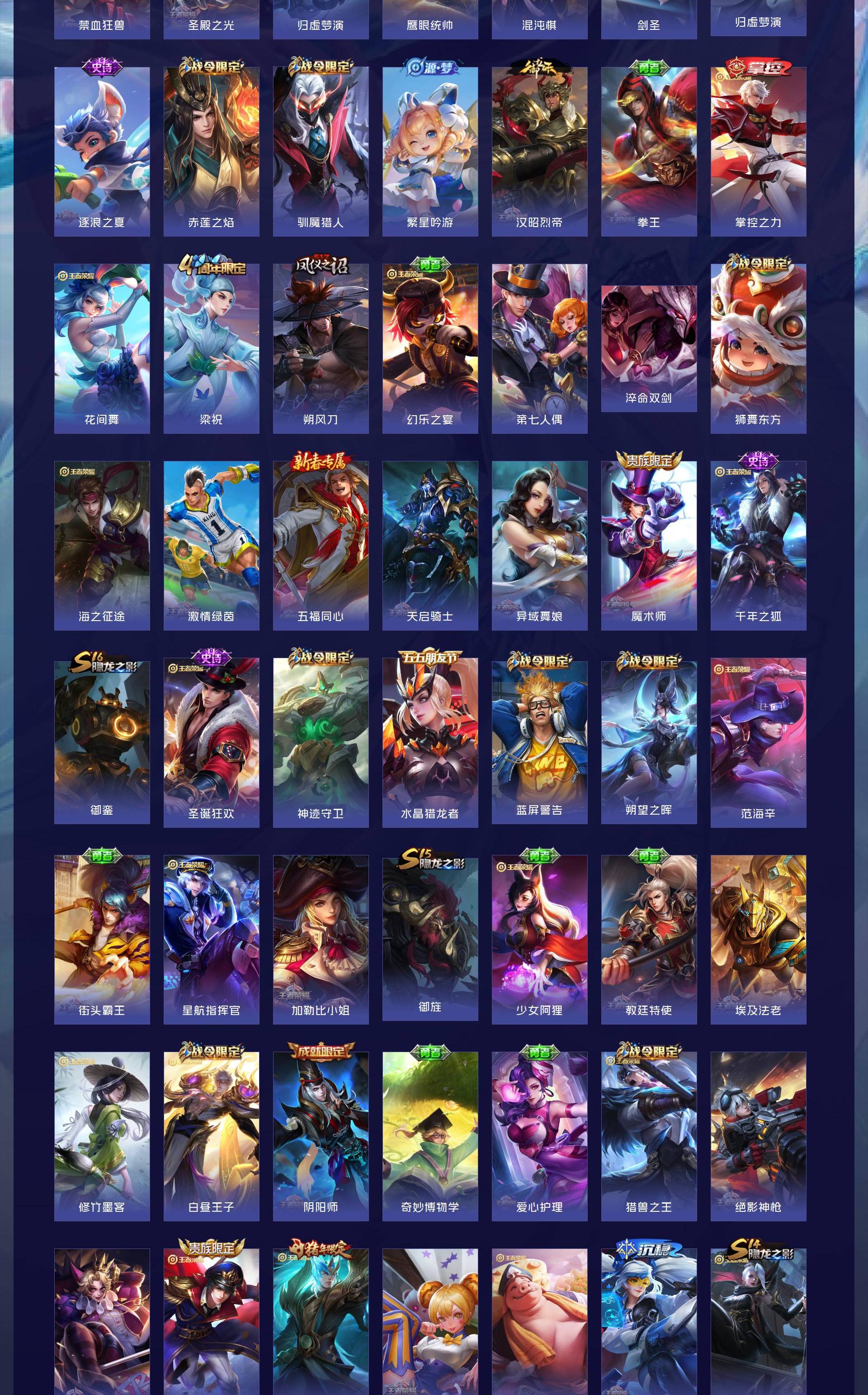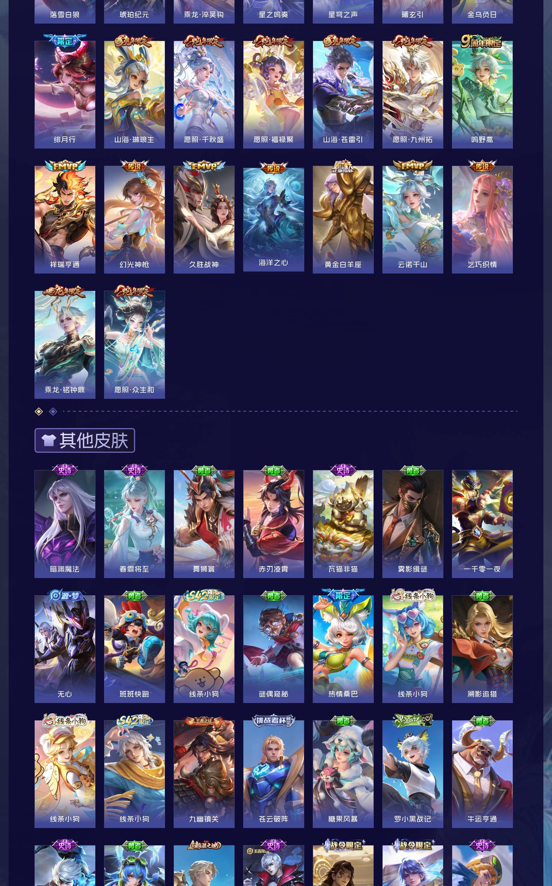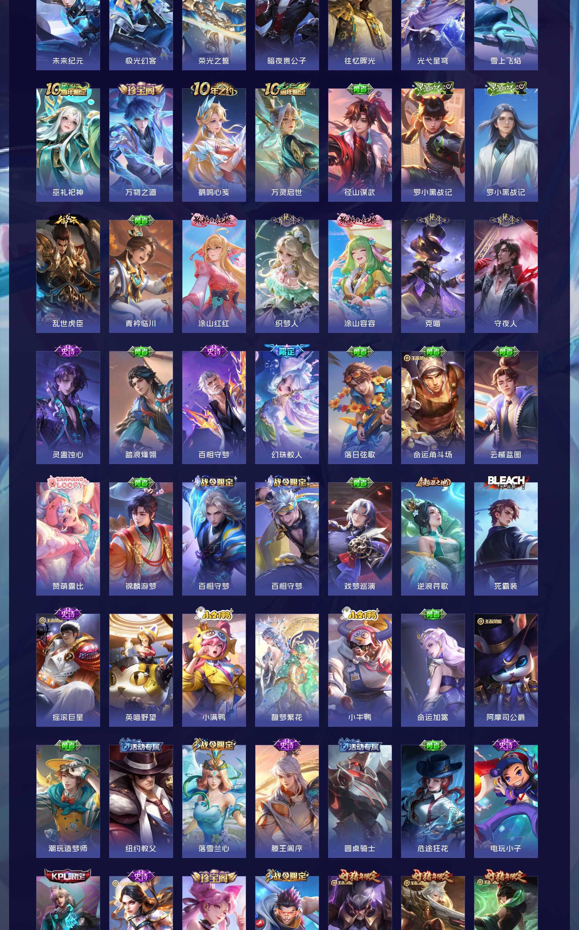 V10 皮肤528 英雄128 绝世王者 荣耀典藏4 珍品无双1 无双皮肤3 珍品传说9 传说59 其他皮肤460