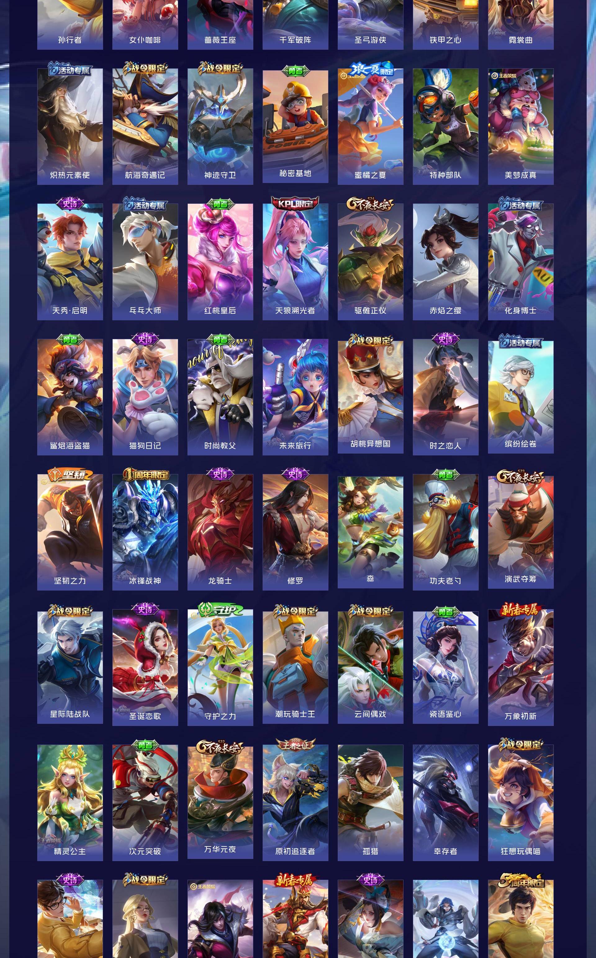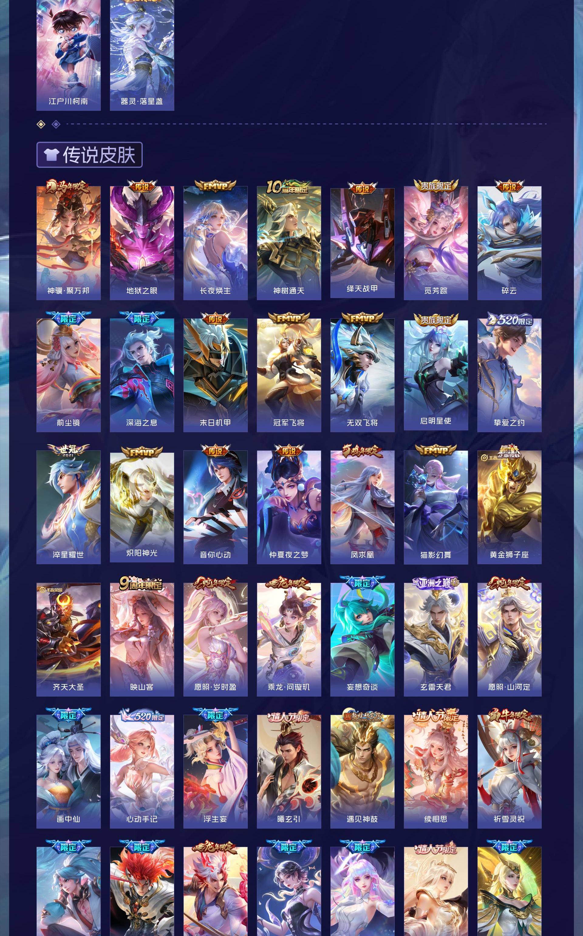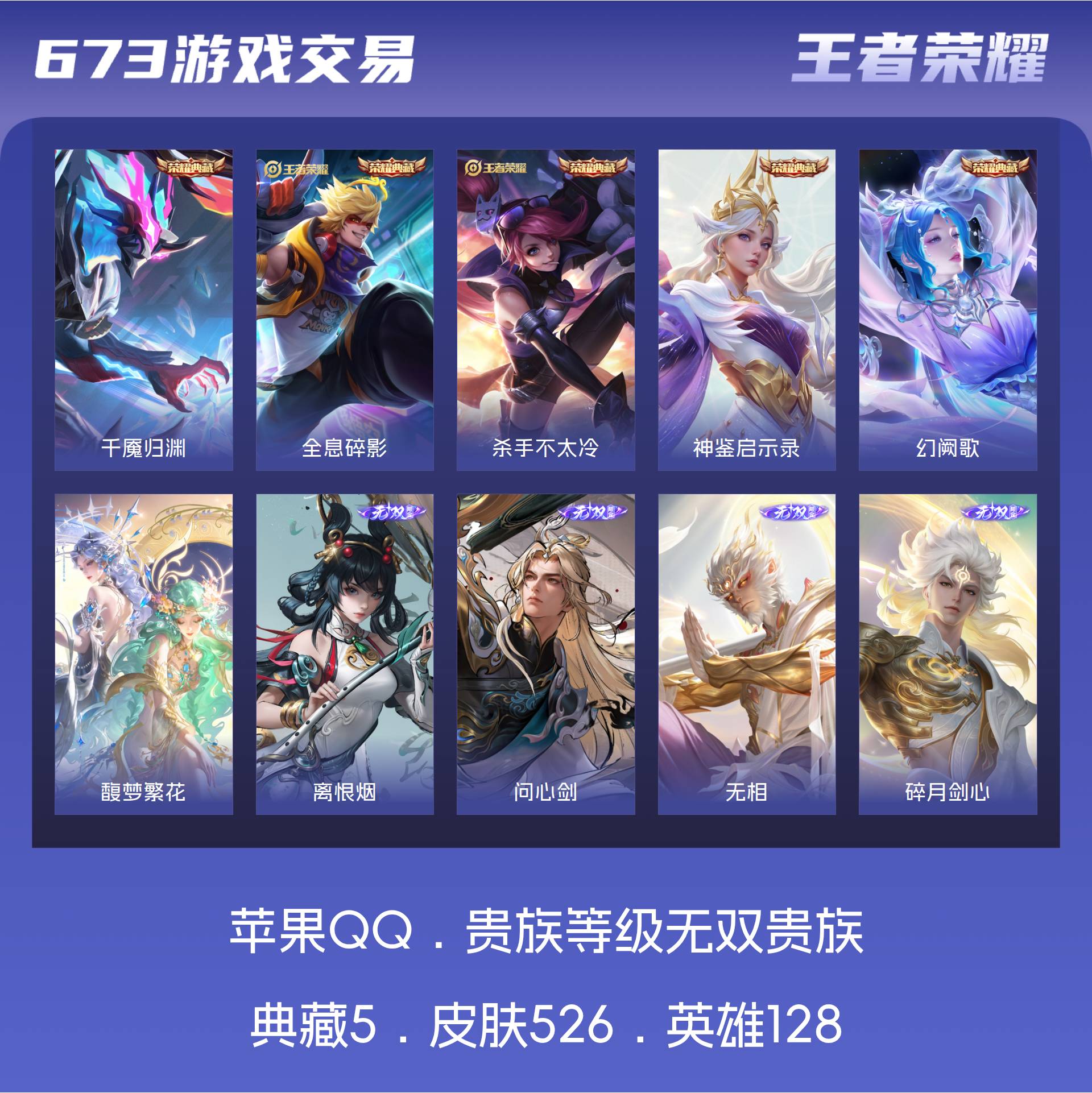 安卓QQ/绝世王者/528皮肤/128英雄/3典藏/1珍品无双/3无双/9珍品传说/58传说/179