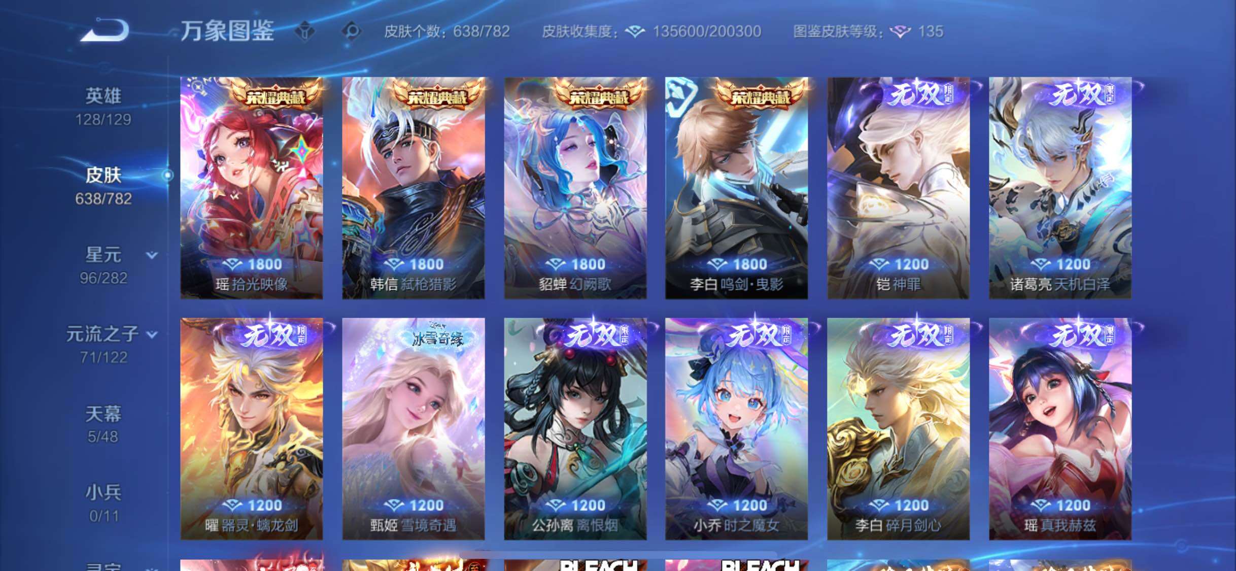 【店铺主推·无双V10·10W流光积分·背包1水晶·4典藏·10无双·7珍品·