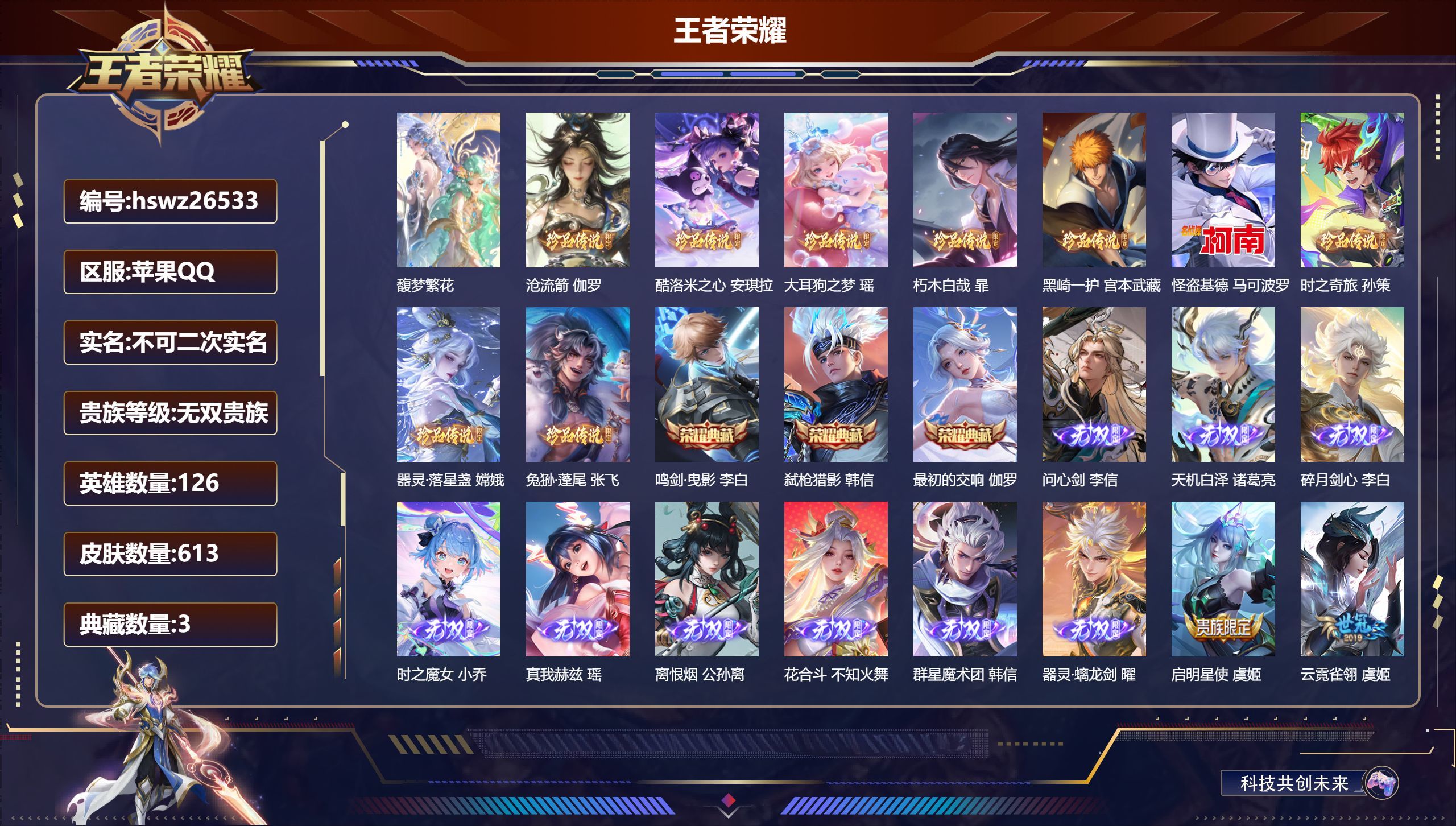 【店铺主推·无双V10·10W流光积分·背包1水晶·4典藏·10无双·7珍品·7星传说·106传说·5天幕·60按键·249个性戳戳·金标万战云缨·全皮甄姬·全皮公孙离·全皮·大乔·全皮嫦娥·全皮西施·全皮嫦娥·全皮李白·全皮露娜·精品带妹号·可二次】YXw15972-苹果WX-128英雄-638皮肤-13王者印记-280铭文-贵族积分41w【无双贵族10】【4典藏