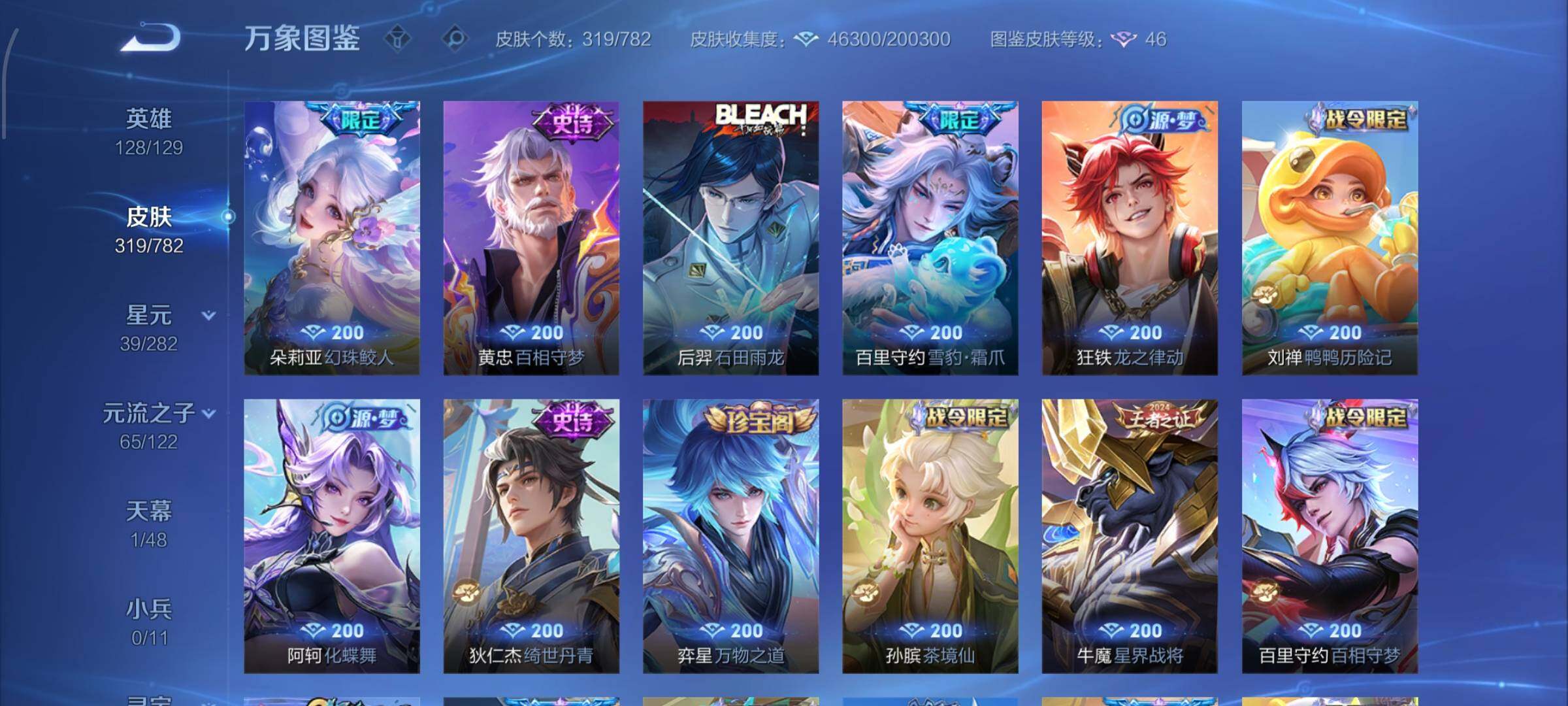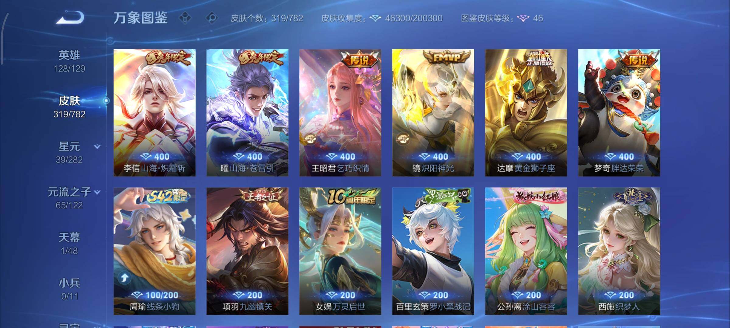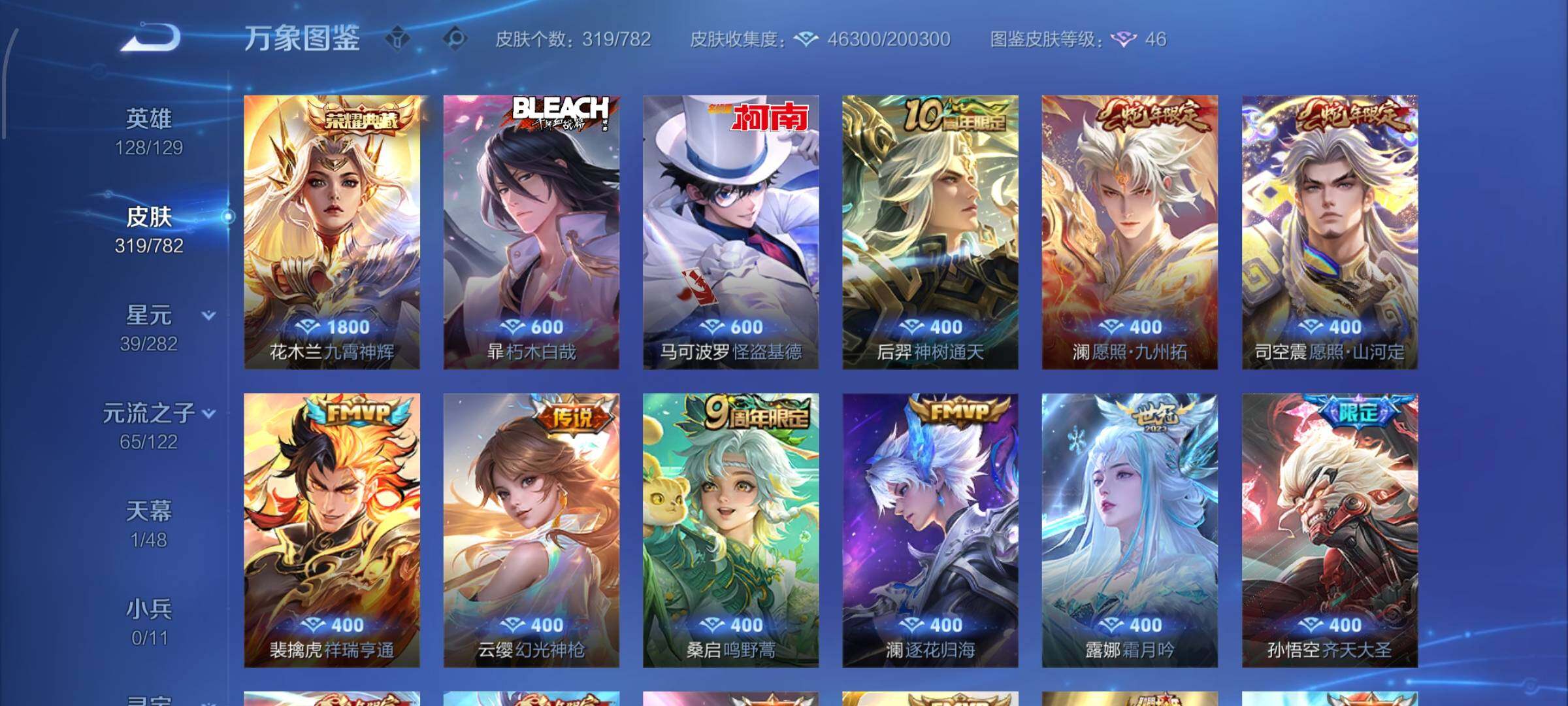 -128英雄-319皮肤-18王者印记-300铭文-贵族积分4w