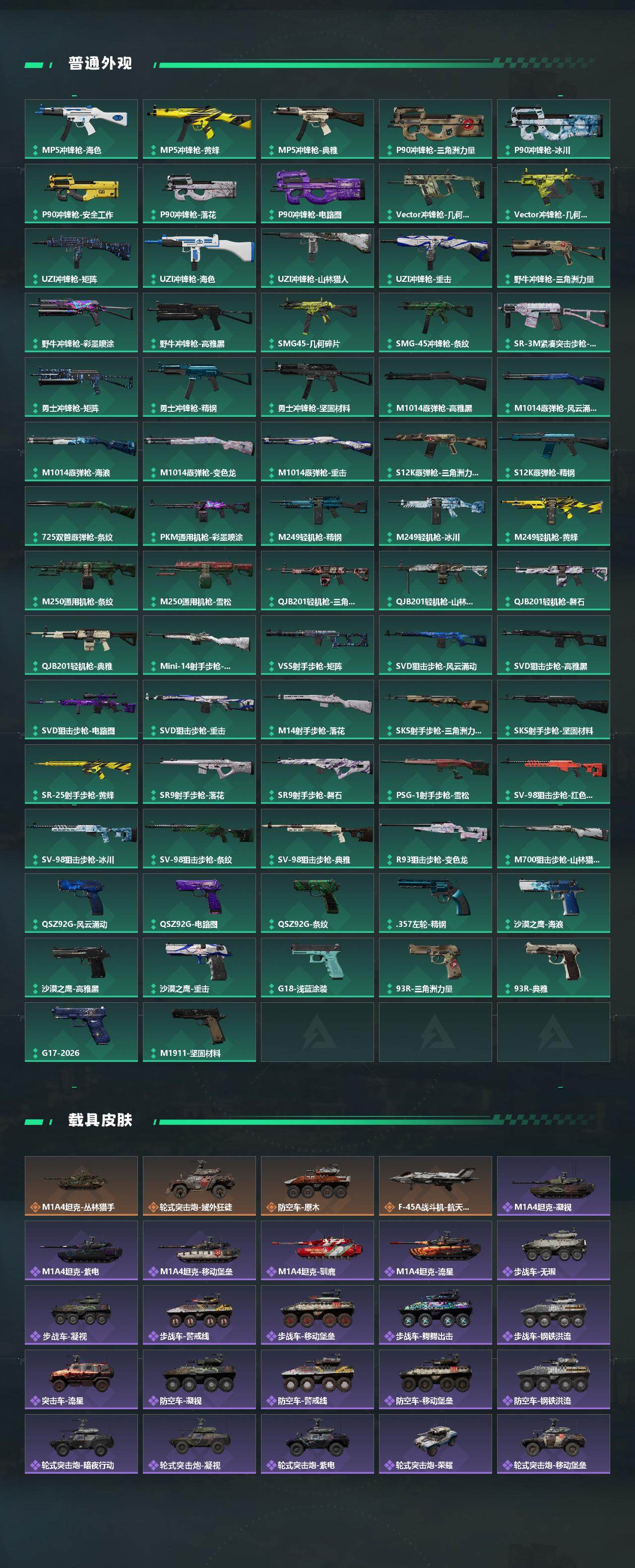 【干员外观】:红狼-蚀金玫瑰,骇爪-水墨云图,露娜-黑·天际线,蛊-能天使午夜邮差,骇爪-维什戴尔,威龙-凌霄戍卫,威龙-壮志凌云,威龙-飞虎,蜂医-送葬人·无题密令,牧羊人-街头之王,无名-夜鹰,深蓝-不破誓约,红狼-电锯惊魂,露娜-金牌射手