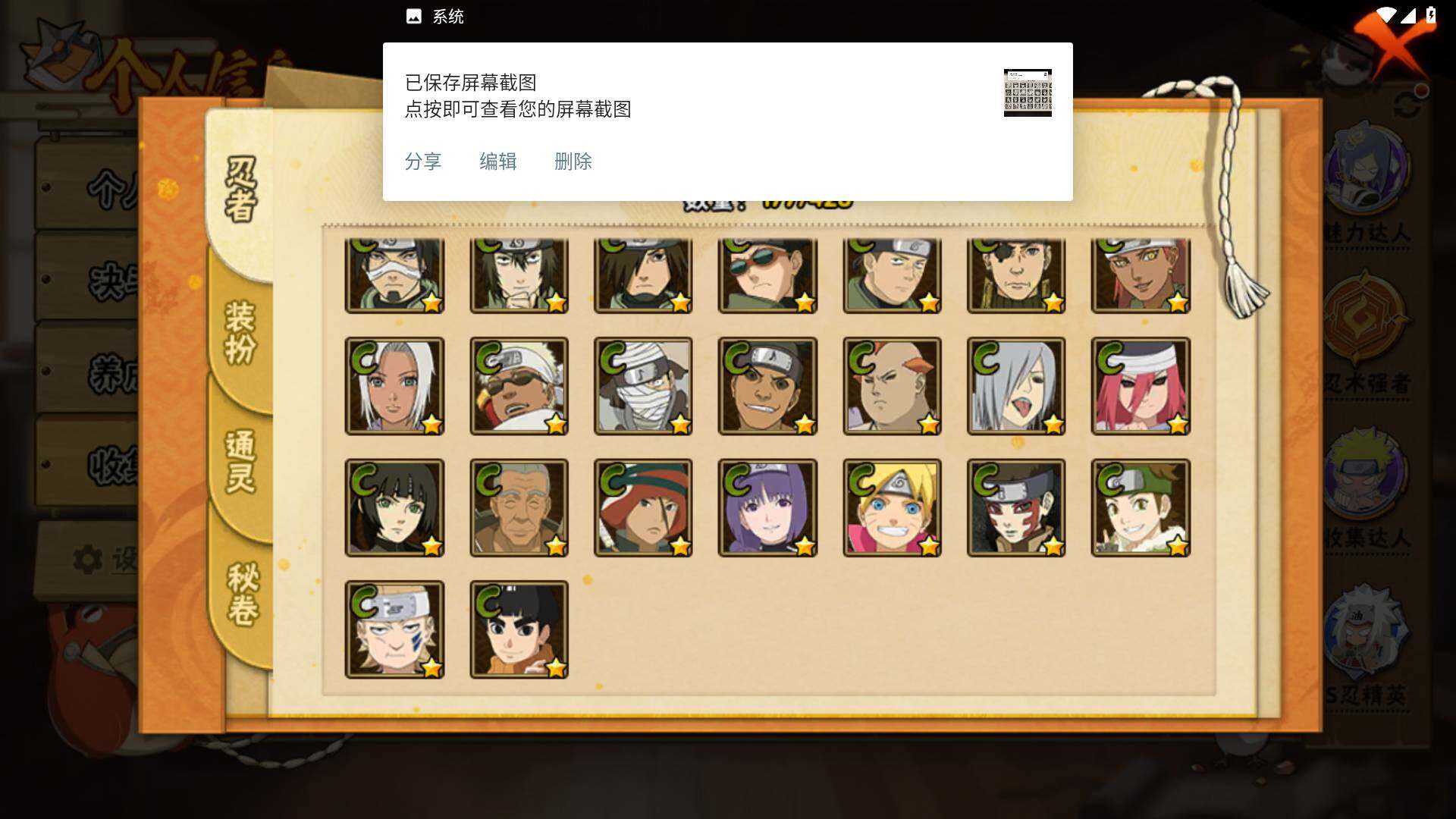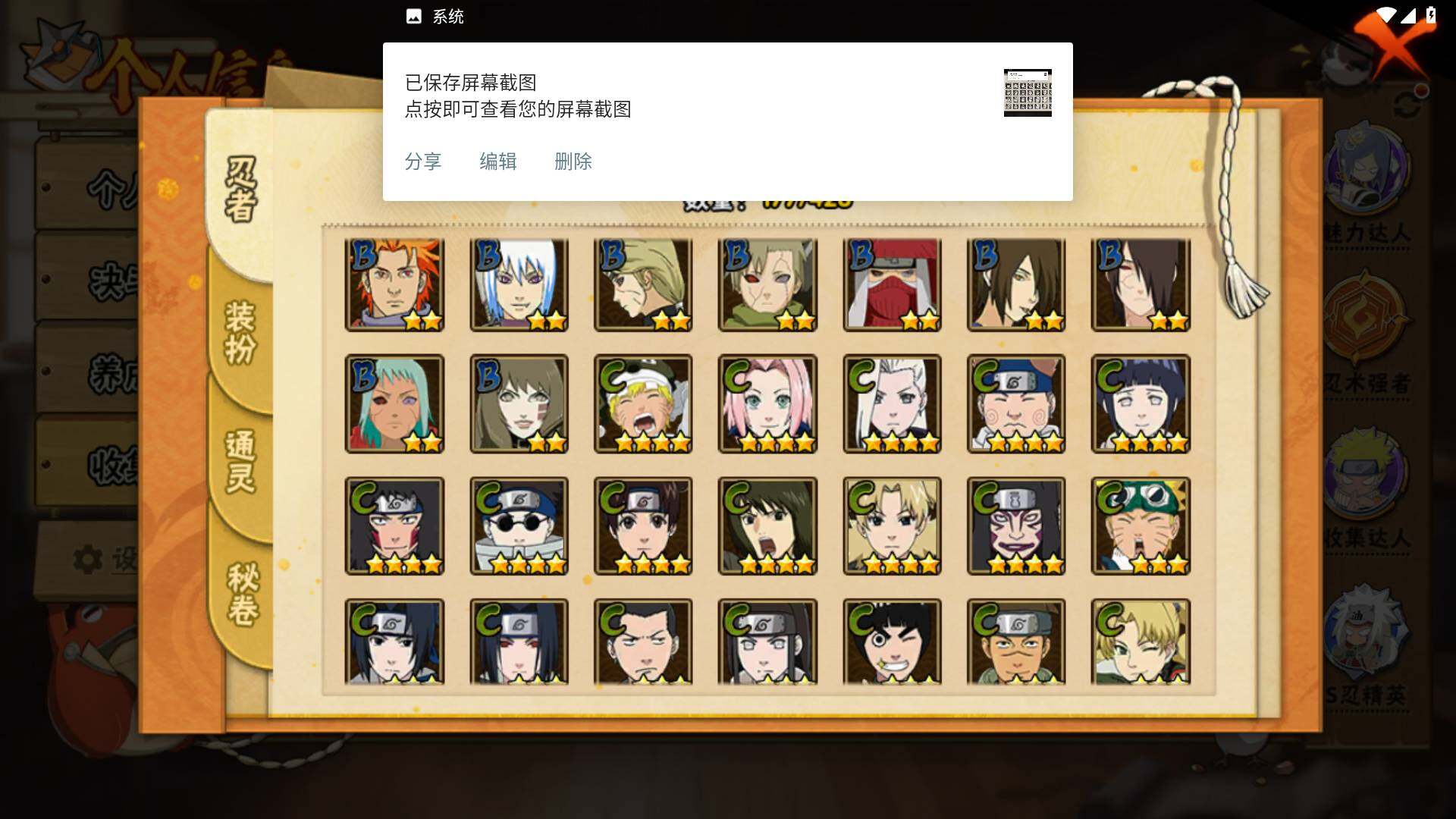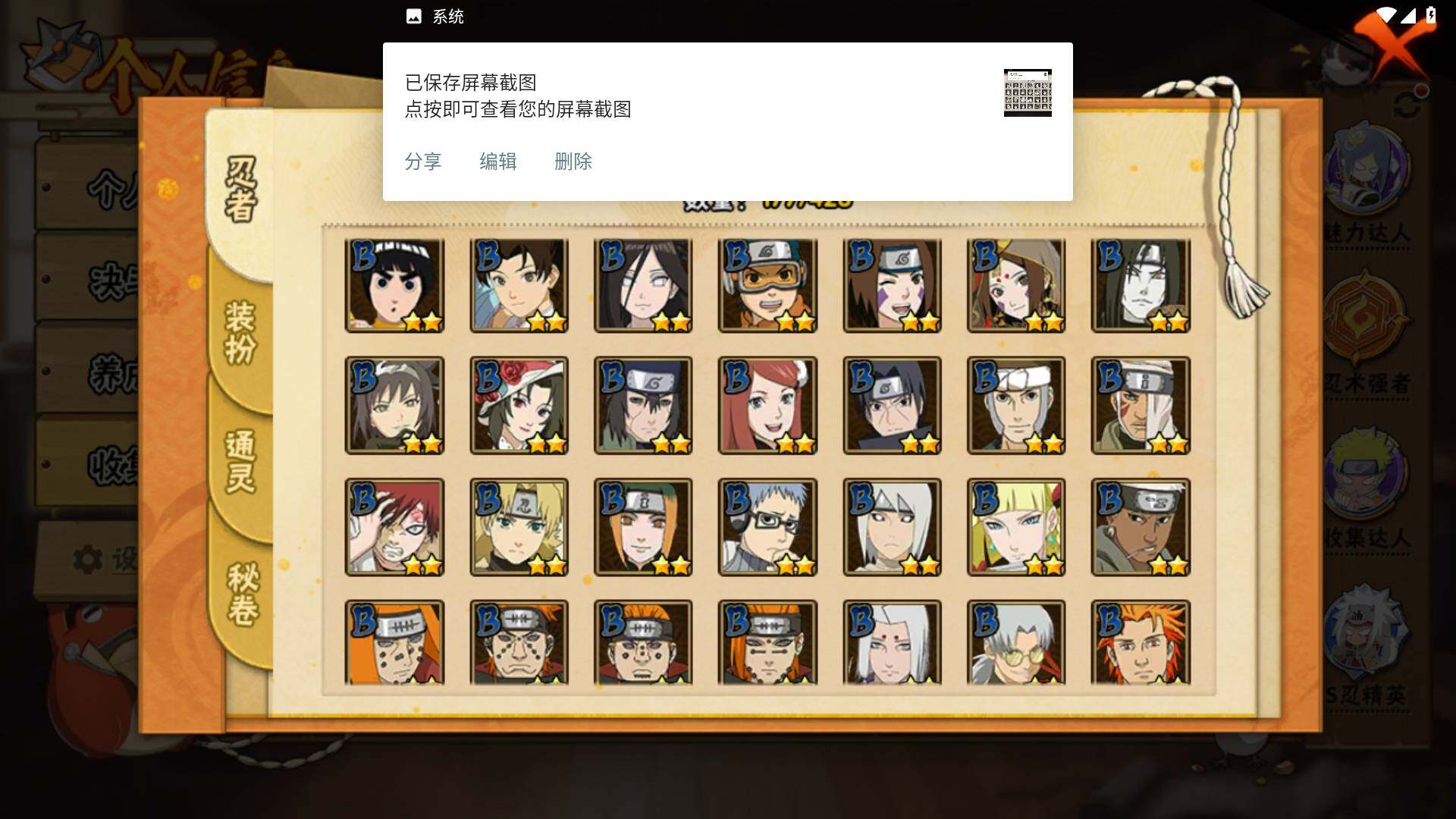 【S级忍者】:波风水门「秽土转生」(3星),千手扉间「秽土转生」(3星),宇智波鼬「秽土转生」(3星),宇智波斑「秽土转生·解」(3星),宇智波鼬「须佐能乎」(3星),自来也「舞之豪杰」(3星),大蛇丸(3星),纲手「百豪」(3星),波风水门(3星),佩恩「天道」(3星),宇智波佐助「永恒万花筒」(3星),漩涡鸣人·宇智