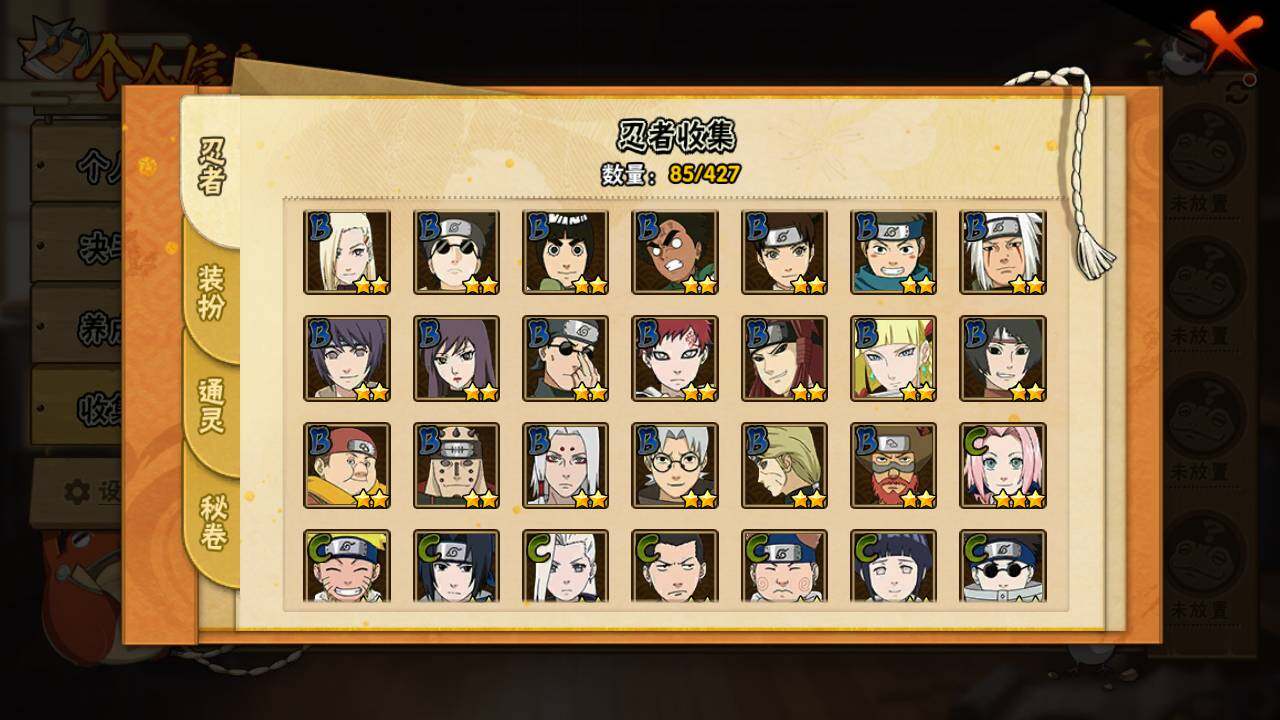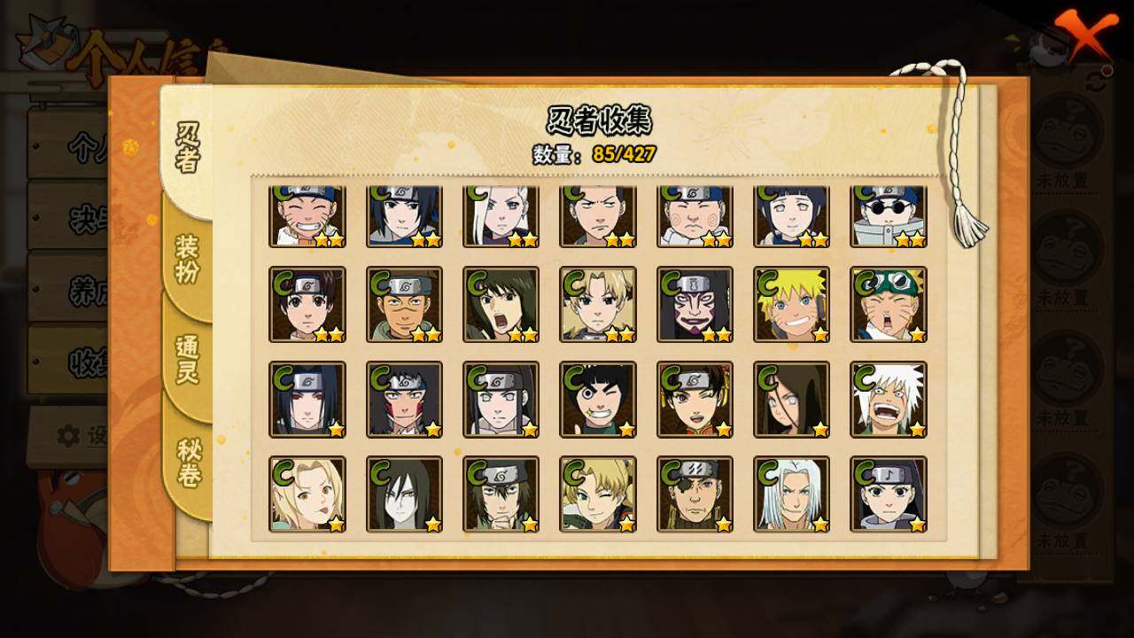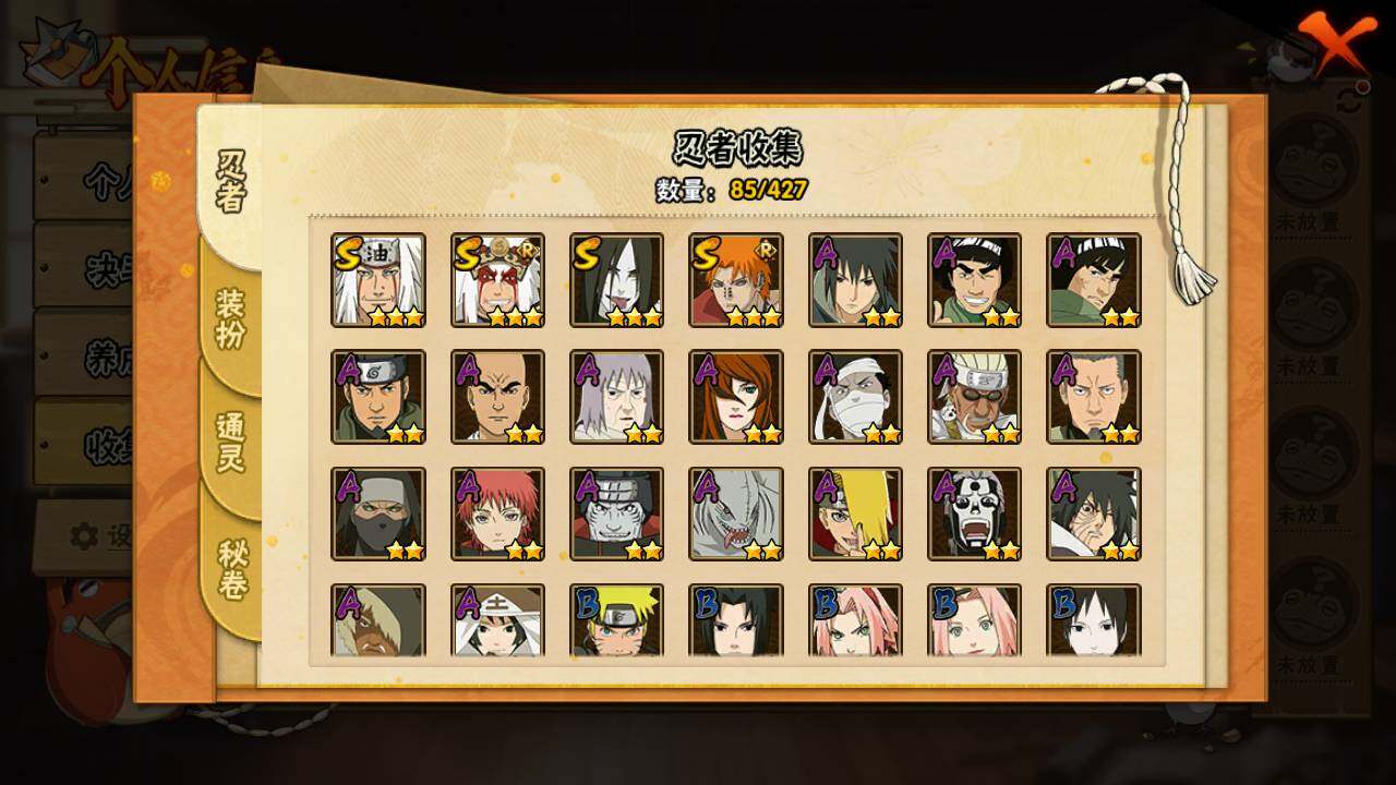 【S级忍者】:自来也(3星),自来也「舞之豪杰」(3星),大蛇丸(3星),佩恩·天道「超」(3星)