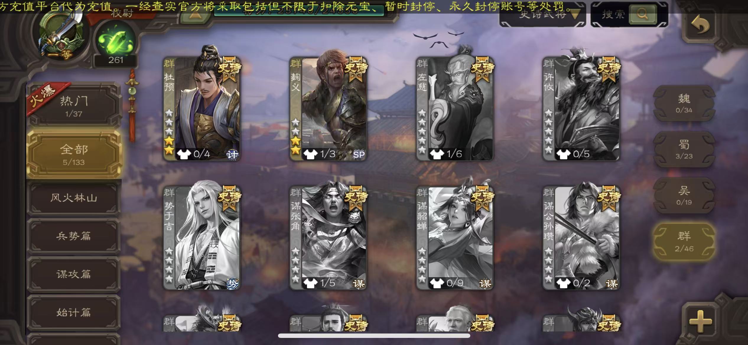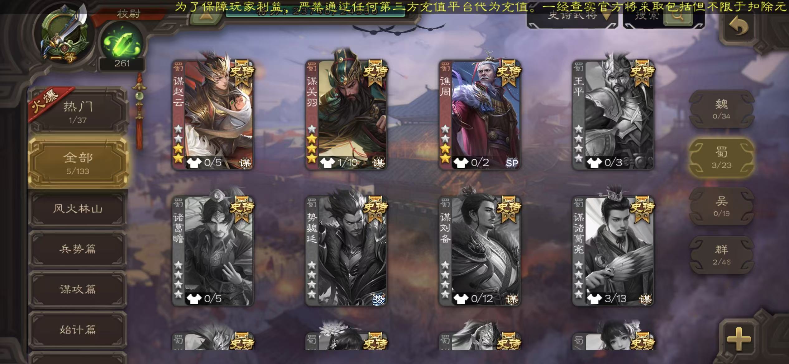 史诗武将数量: