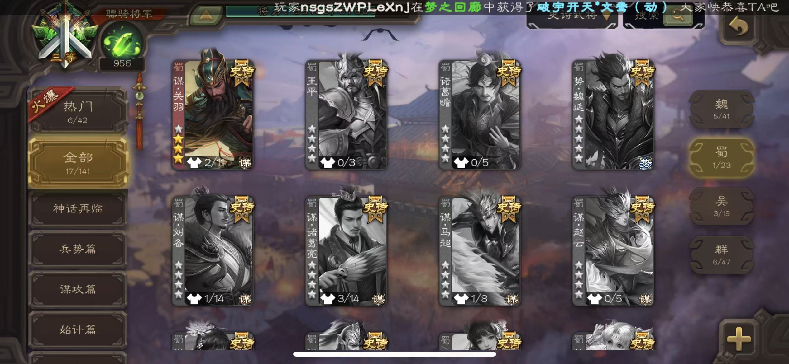骠骑17史诗动态势陆郁生动态杜预谋关羽动态神吕布戏子骆驼谋白马郑玄三卡