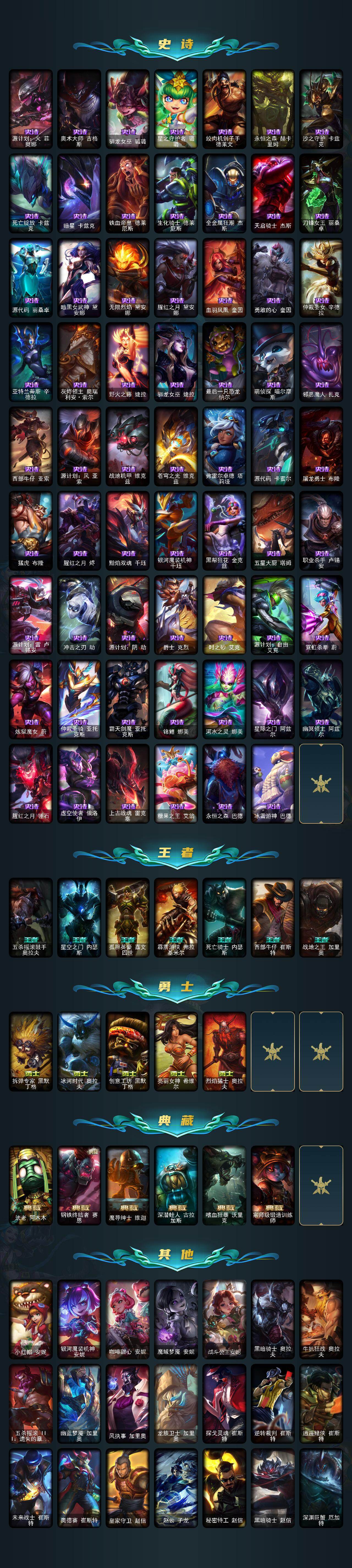 未定级段位-172英雄-1149皮肤-396炫彩-7终极-73神话-185限定-99传说-209史诗