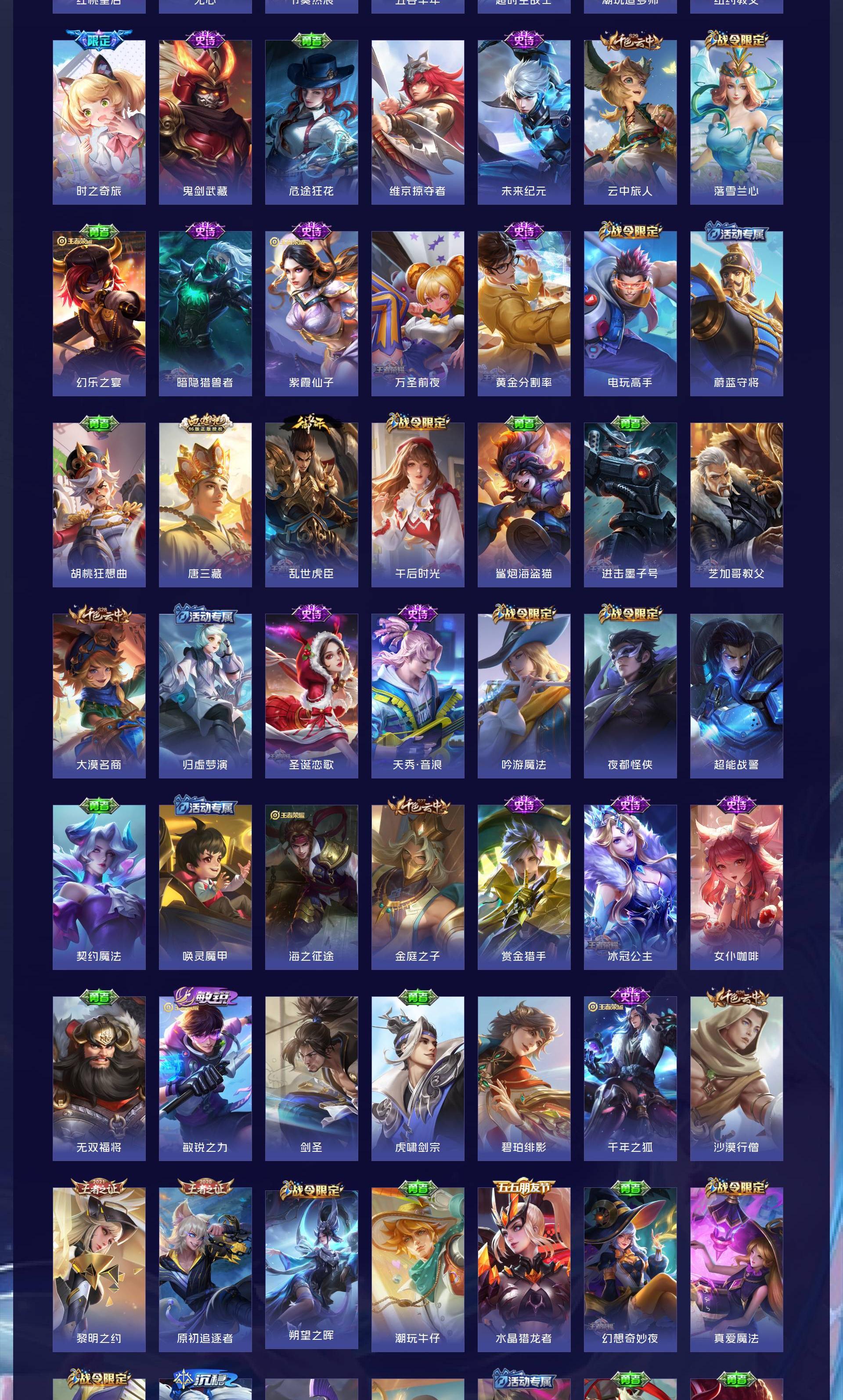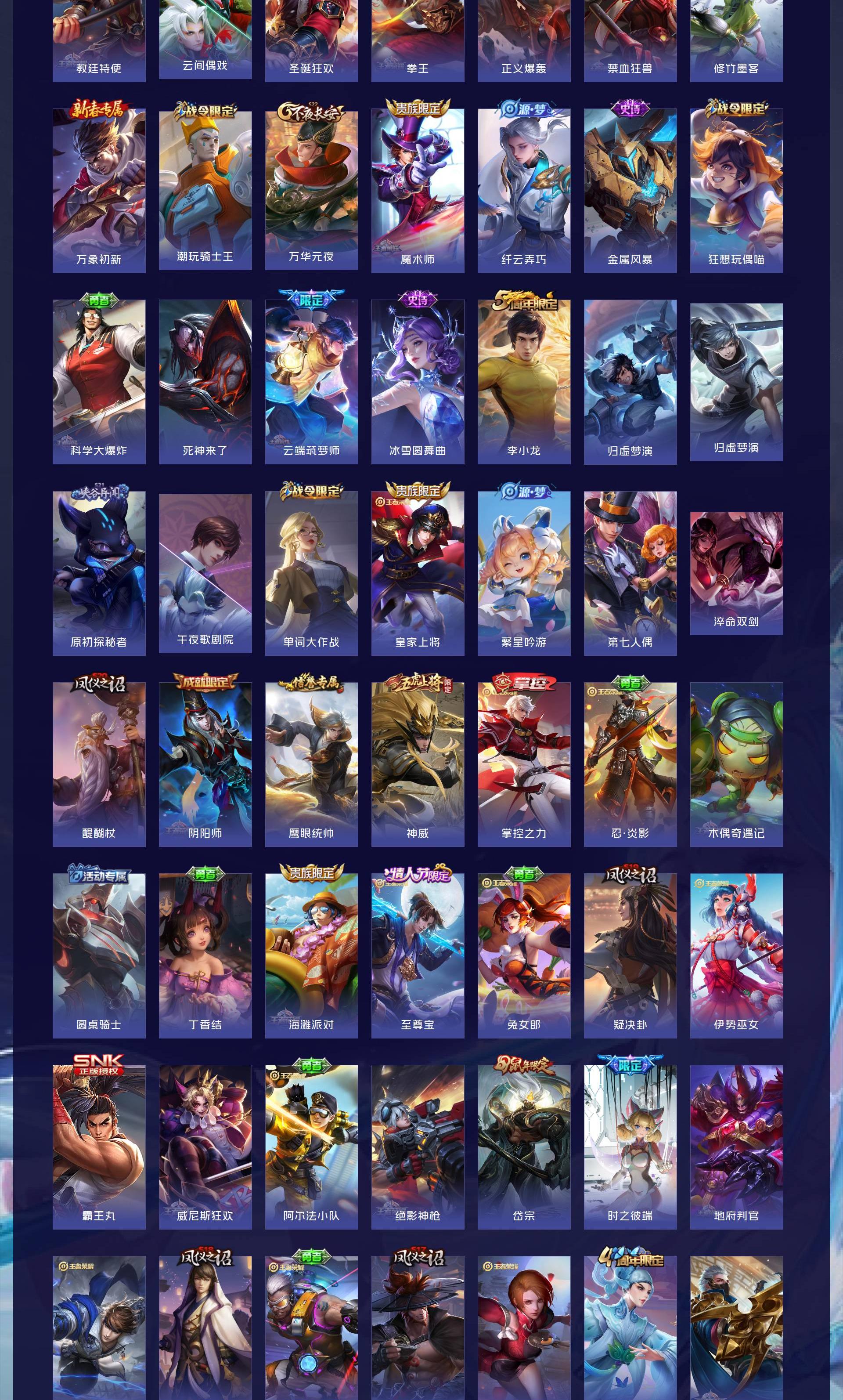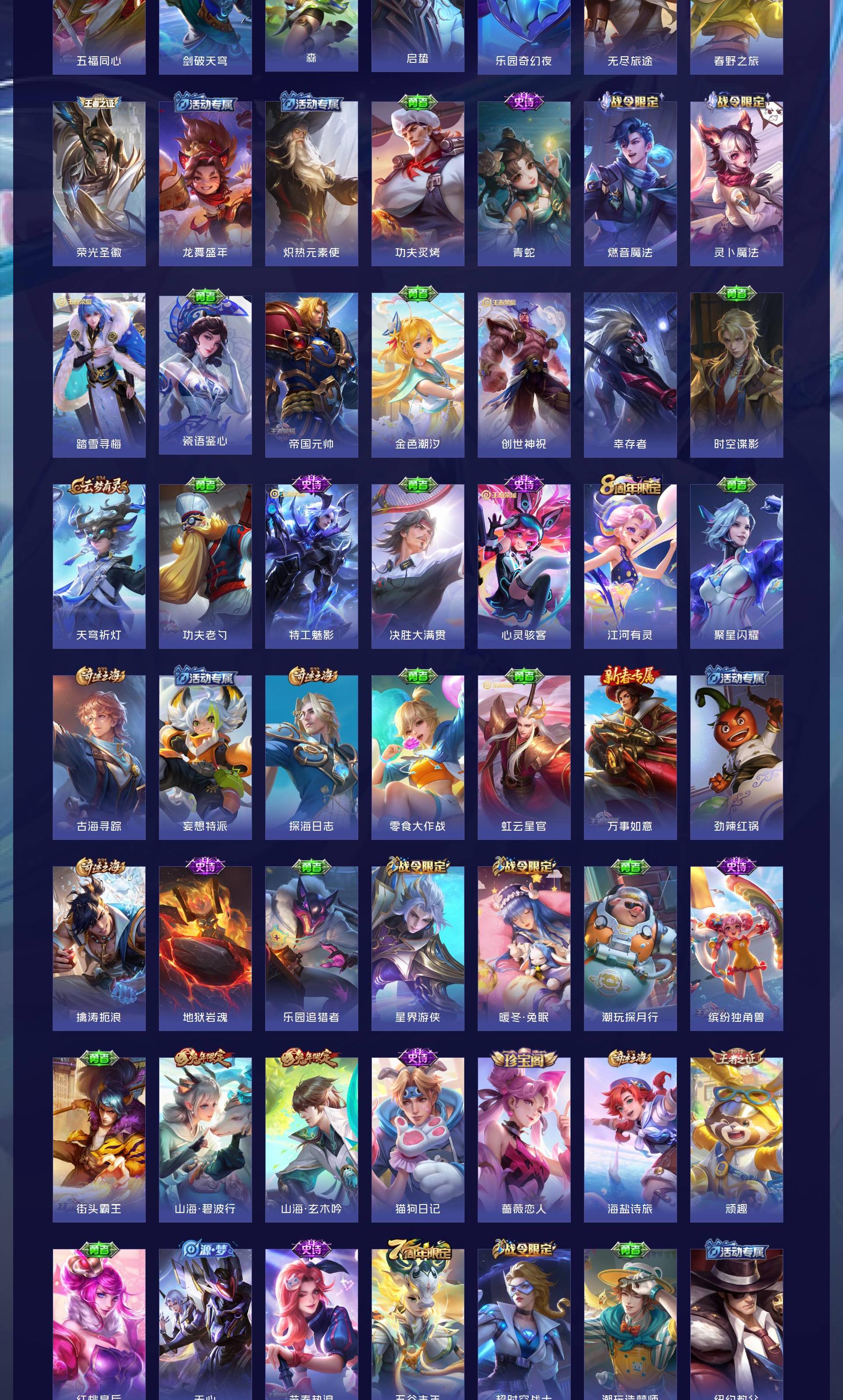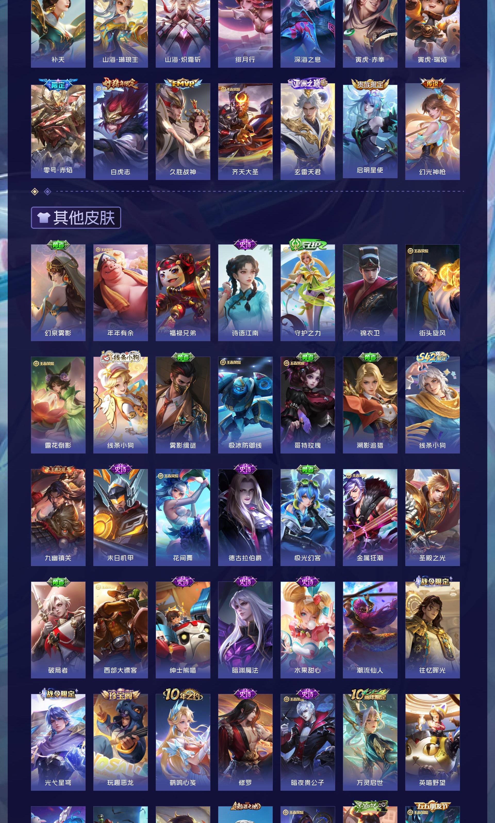 V8 皮肤350 至尊星耀 荣耀典藏2 无双皮肤1 珍品传说1 传说22 其他皮肤331