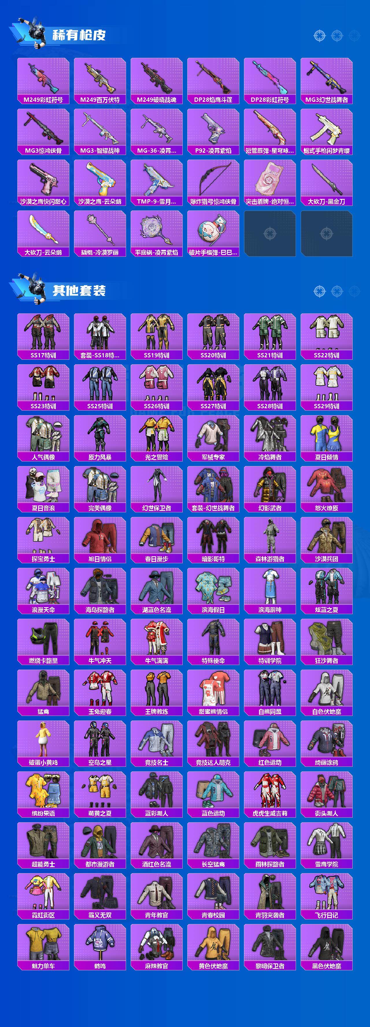 【HP1849】192套装/枪械15/装备281/战备179/王牌印记16/热力值75311/五级SCAR-L-锦绣绵绵/五级M416-电玩时刻/五级GROZA-镜光银凌/七级AUG-许七安/五级AUG-暖羊咩咩/五级M762-青锋波束/五级蜜獾-异瞳寒姬/五级UMP45-量子极限/五级汤姆逊-热量炸弹/五级Kar98K-巳巳如意/七级Mk14-精灵梦叶罗丽/五级Mk14-甜梦熊击/七级MK12-雪月幻音/五级DP-28-豹影疾电/五级MG-36-沧焰双生/套装-浪漫天命/套装-都市猎人/套装-