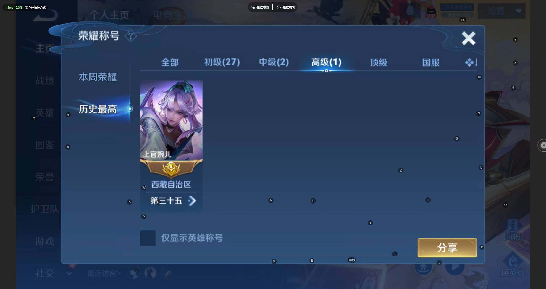 金标上官婉儿 中路23段 苹果Q-V8-尊贵铂金I段位-126英雄-206皮肤