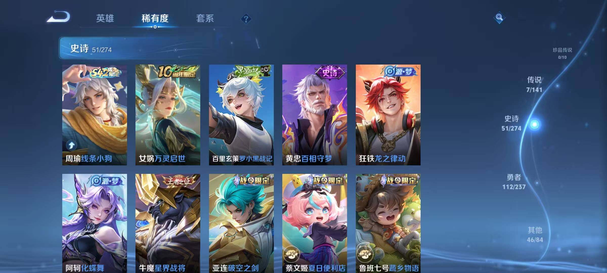 安卓Q-V6-最强王者段位-126英雄-216皮肤-7传说-50史诗【传说皮