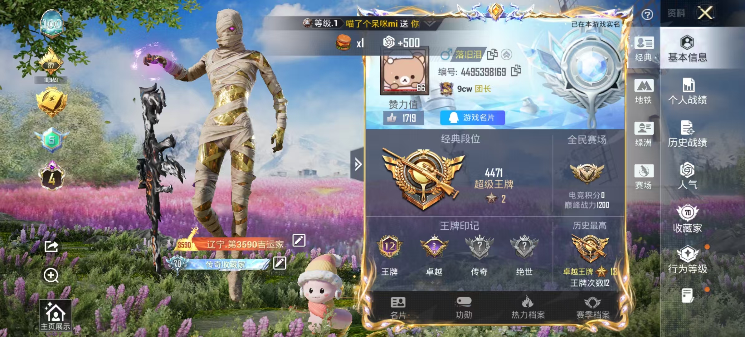 12王牌印记-1红装-6粉装-12特效枪-76647热力值-162套装-225枪皮-3卓越印记