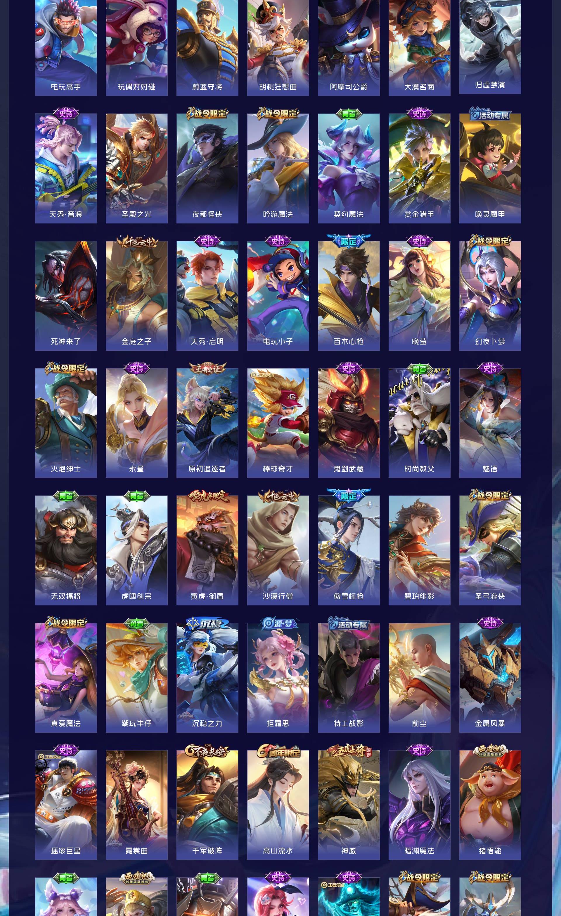 V9 皮肤504 英雄128 至尊星耀 荣耀典藏3 无双皮肤3 传说50 其他皮肤453