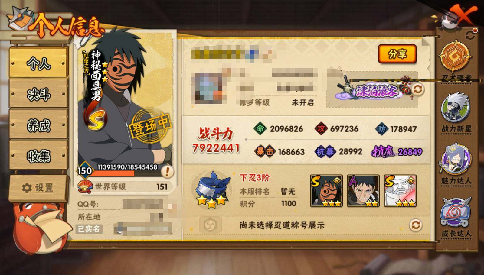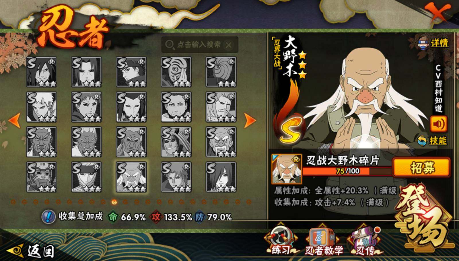 V11/战力792W/S忍20/A忍36/2星大野木「侠隐江湖」