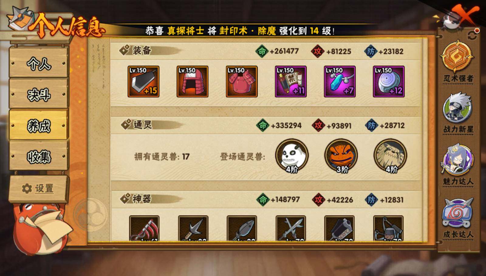 【HY4019】V11/战力792W/S忍20/A忍36/2星大野木「侠隐江湖」/五代目雷影-达鲁伊/死司凭血-飞段/宇智波止水/5星猿飞阿斯玛/侠隐江湖-药师兜/宇智波斑/3星蝎/5星迈特凯/六代目水影-长十郎/2星蝎「绯流琥」/3星漩涡鸣人「暴怒·第六尾」/白面具-宇智波斑/死门-迈特凯/3星自来也「传说中的三忍」/漂泊浪客-佩恩·六道/秽土转生-迪达拉/2星纲手「妖怪奇谭」/2星神农「羁绊」/忍界大战-春野樱/迪达拉/九尾查克拉-漩涡鸣人/忍界大战-日向宁次/2星宇智波带土「漂泊浪客」/宇