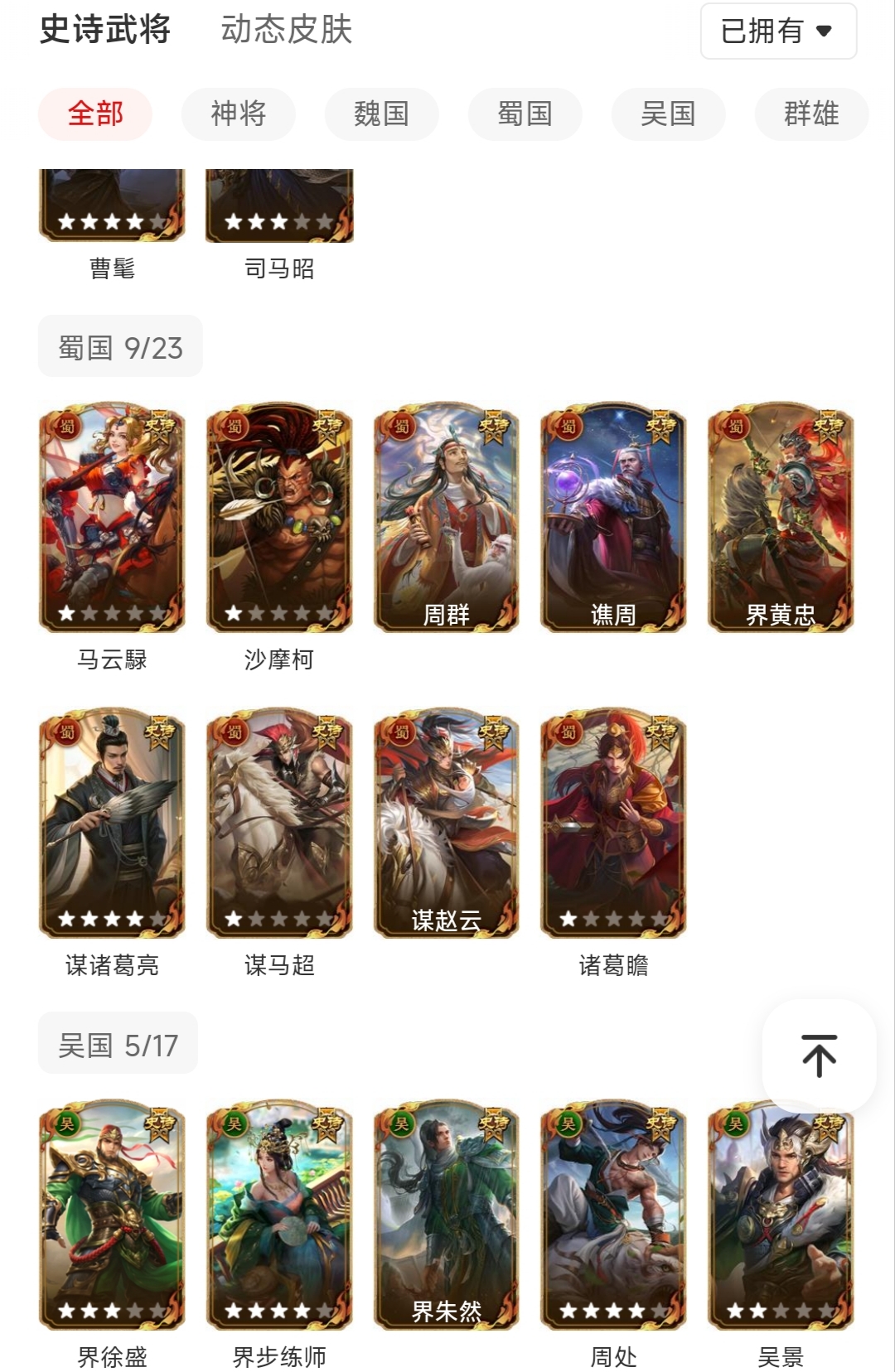 史诗武将数量: