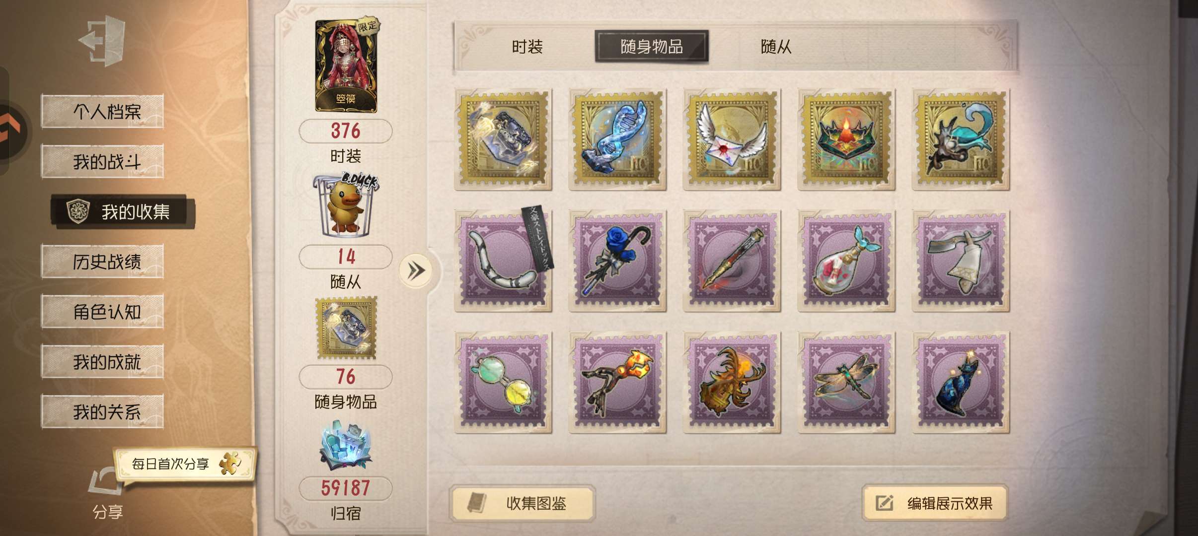 随身物品数量: