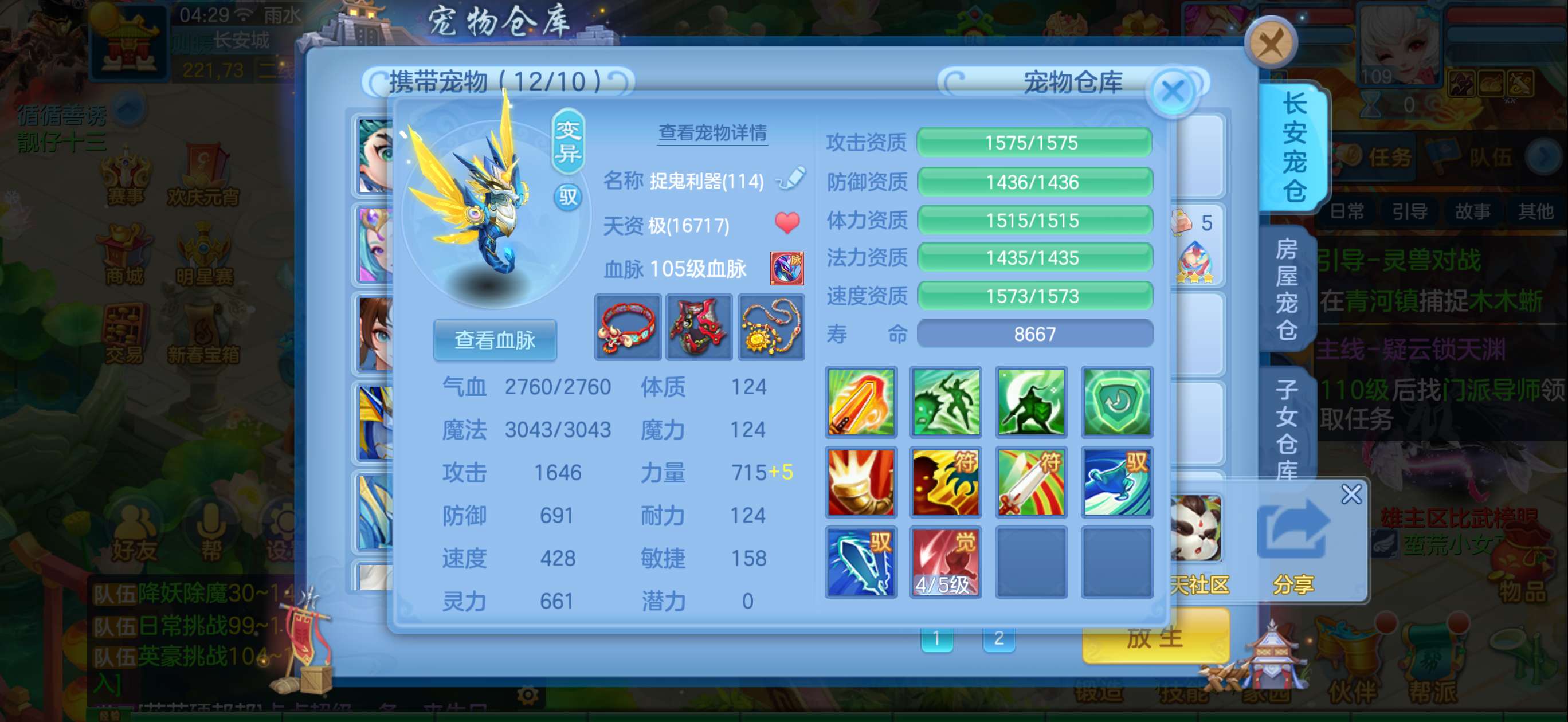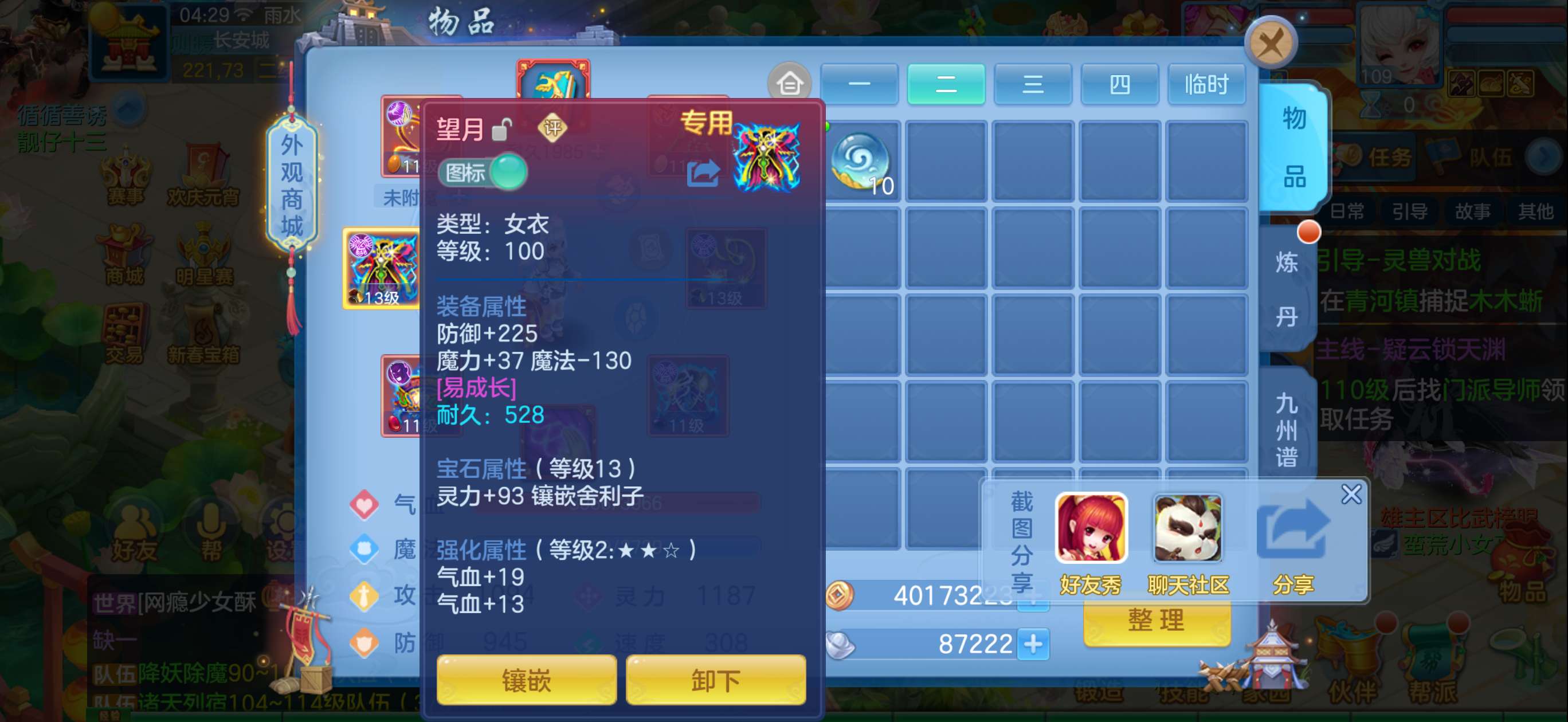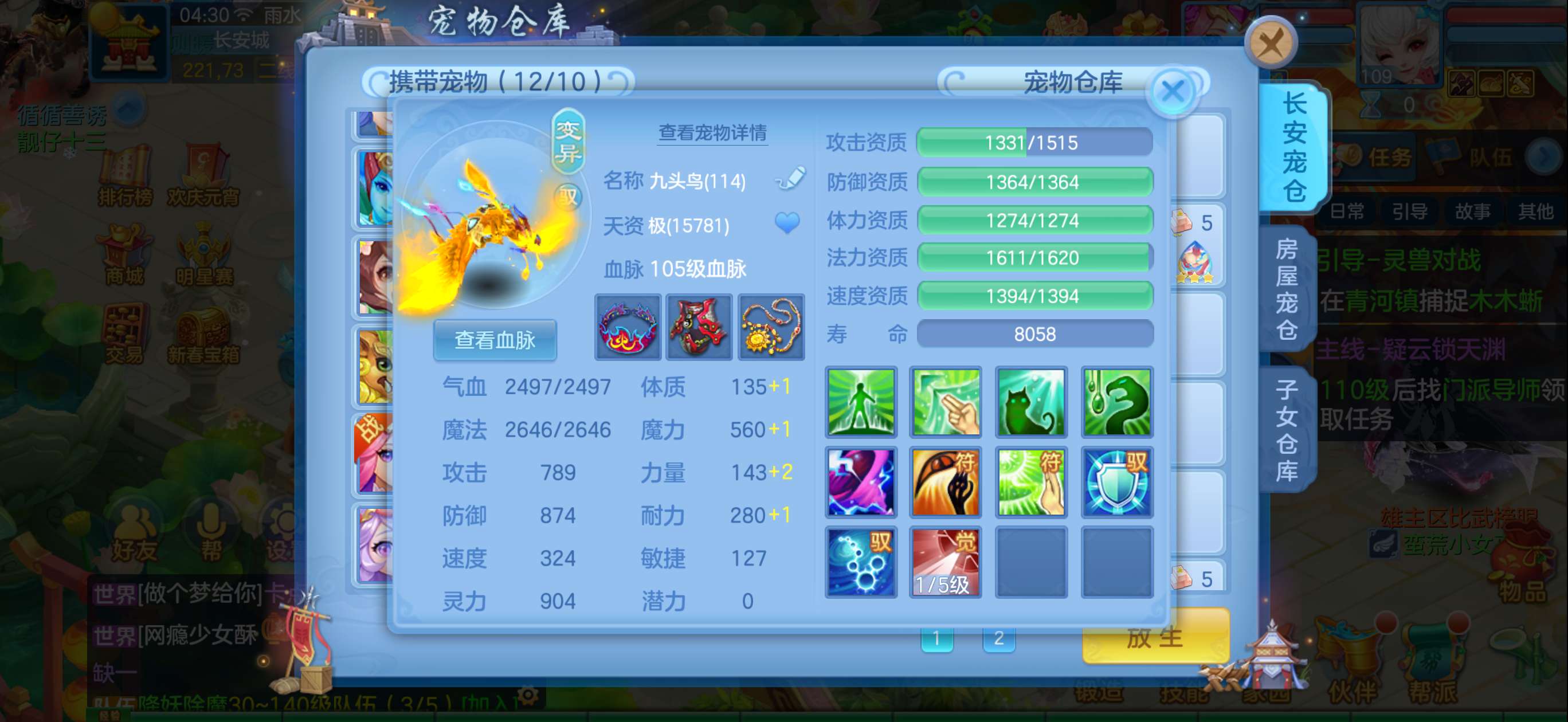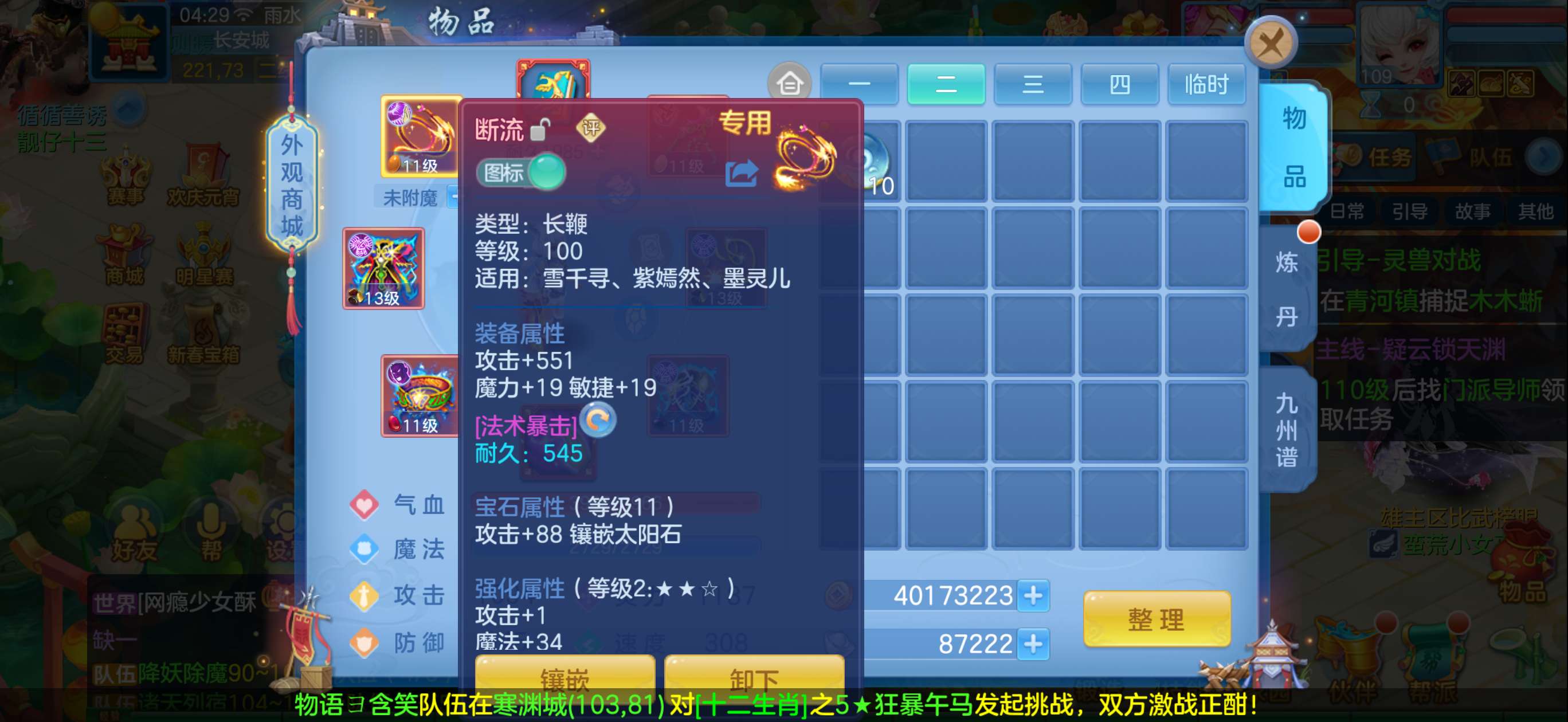 109魔王带内胆蛇,多个特殊带时装。3个高级坐骑,衣服项链段13其他段11