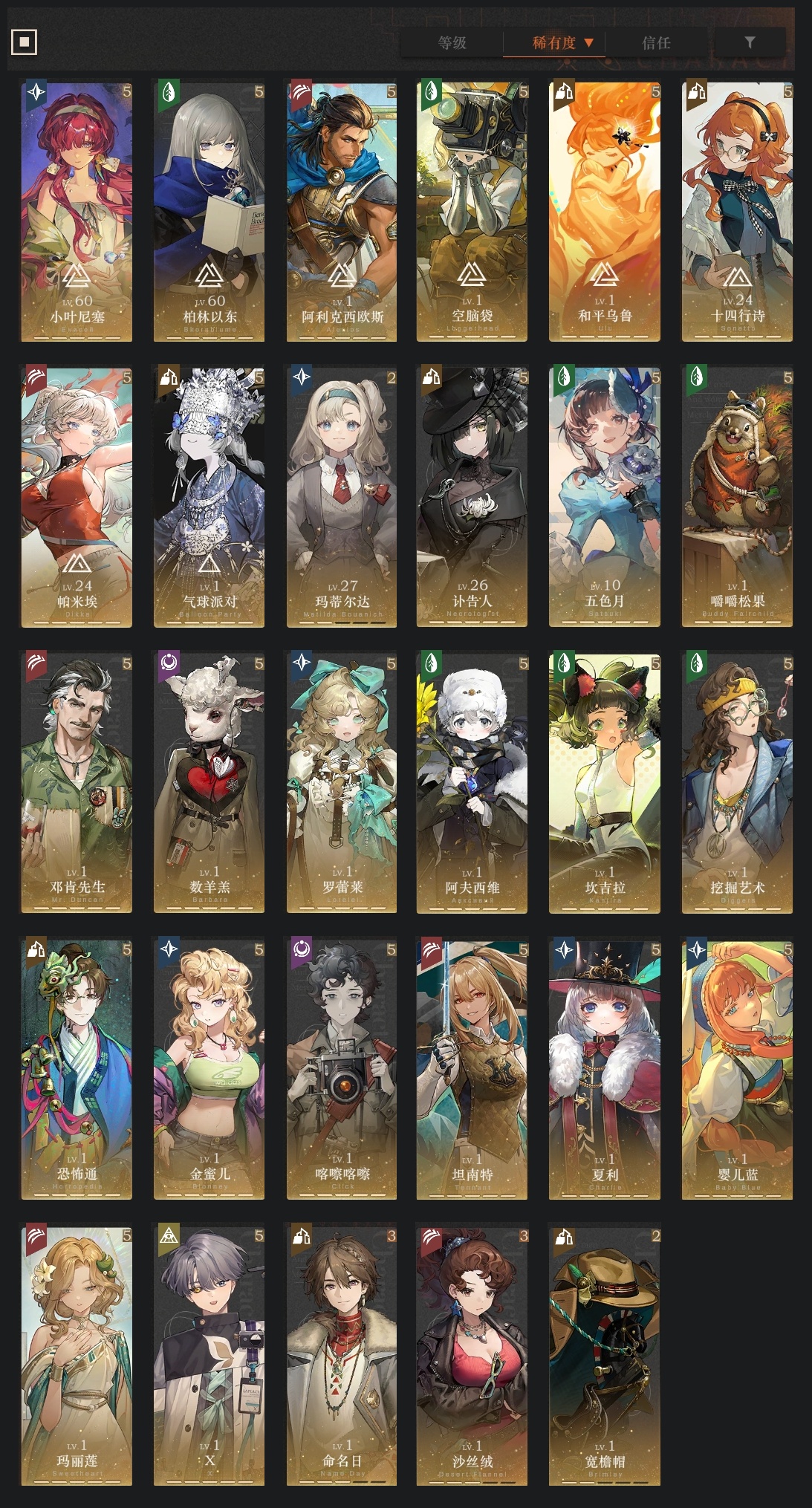 五星角色数: