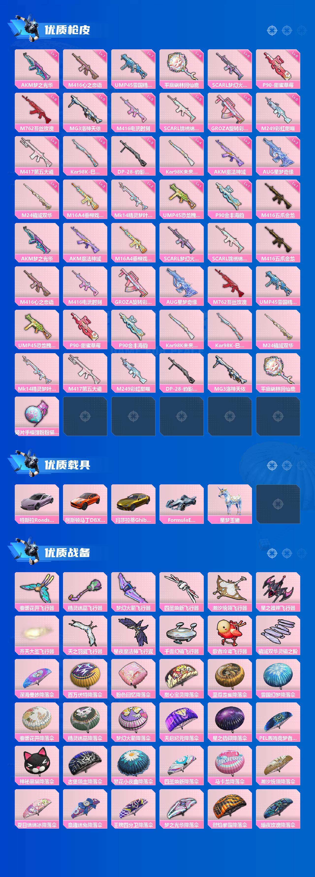 6级欧若拉【特价出售/店主推荐】苹果 微信-无敌战神框-1神装-72粉装-25特效枪-5载具-14粉色飞行器-23·5w热力值-29王牌印记-468套装-549枪皮