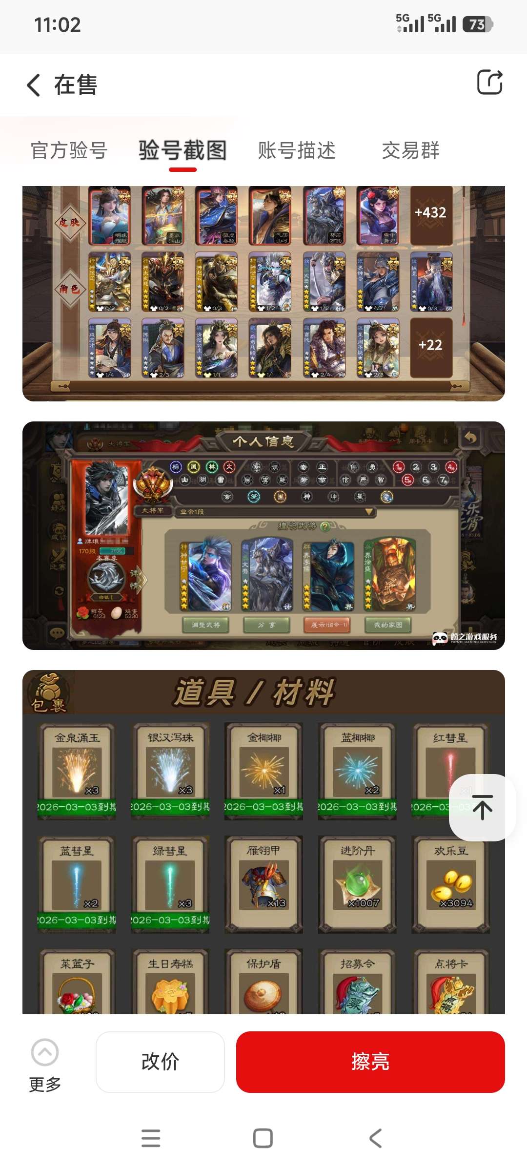 通过App,与卖家商议价格及保险,并向卖家索要账号最新截图,确认后下单购买。