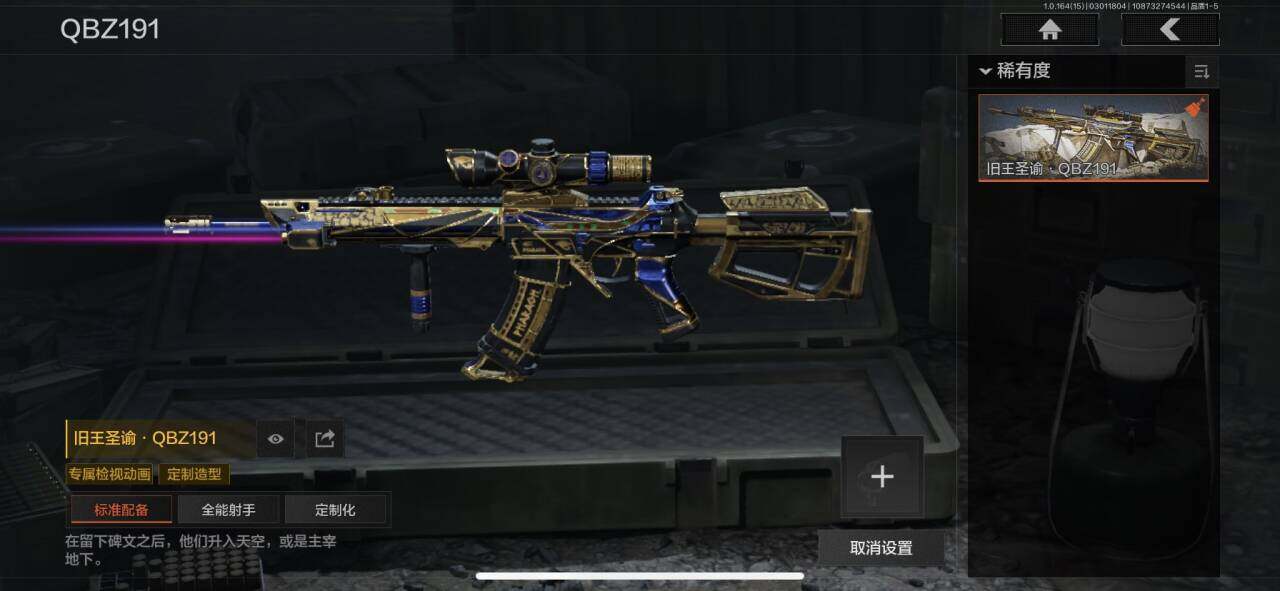 段位:专家/急袭弯刀/工兵铲/黑卡蒂/旧王圣谕QBZ191