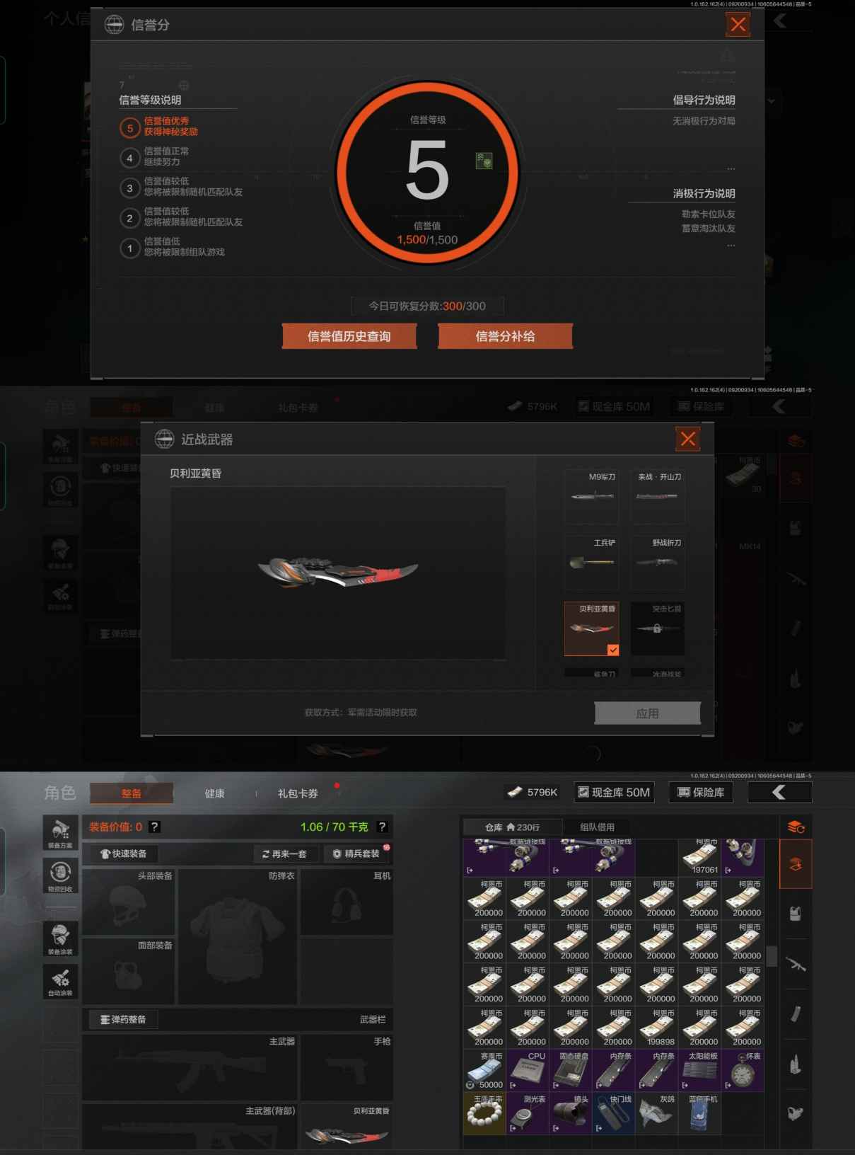 仓库价值65.7M 现金库50M 贝利亚黄昏 野战折刀 2金枪 1金手套禁忌力