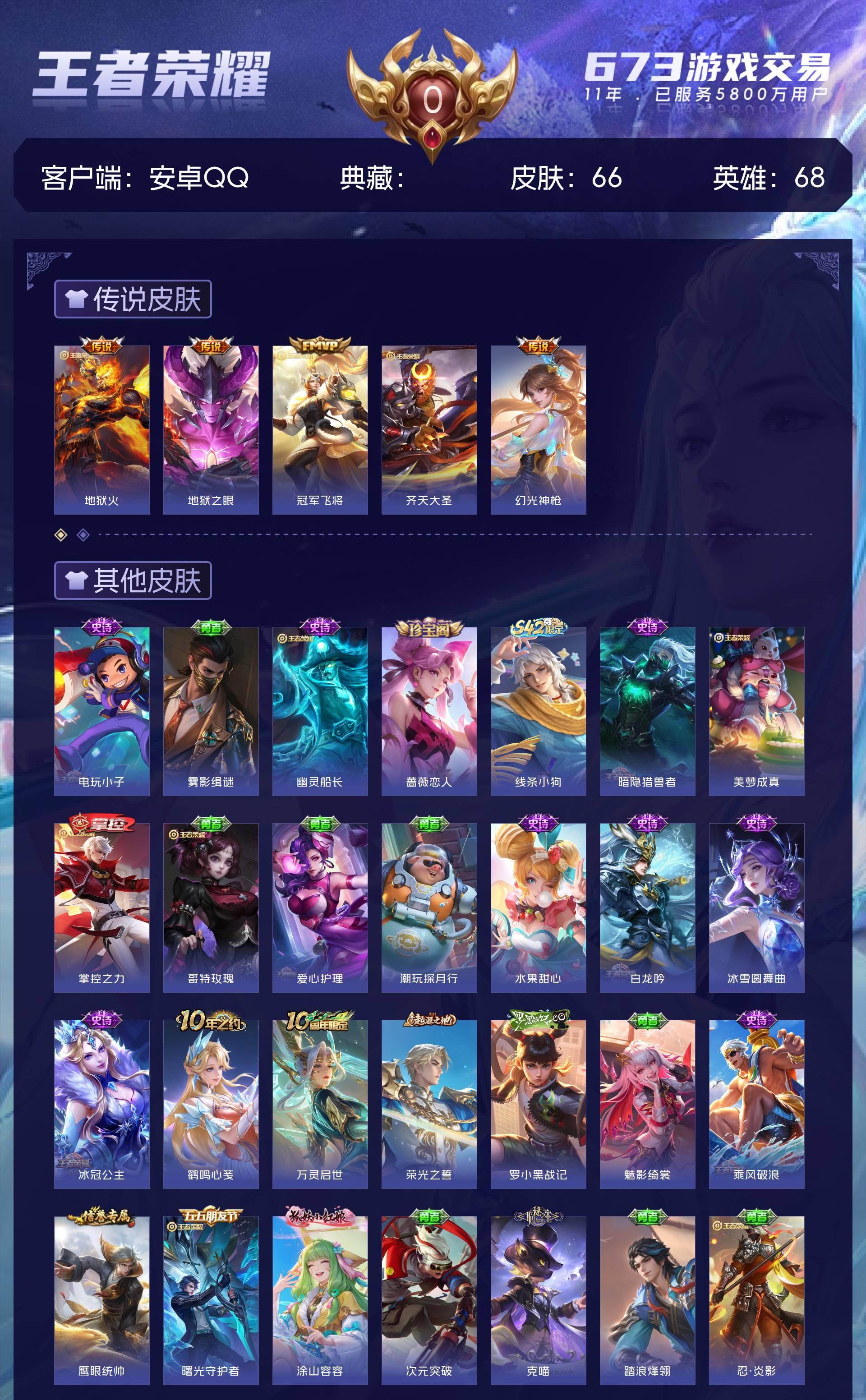 皮肤66 英雄68 最强王者 传说5 其他皮肤66