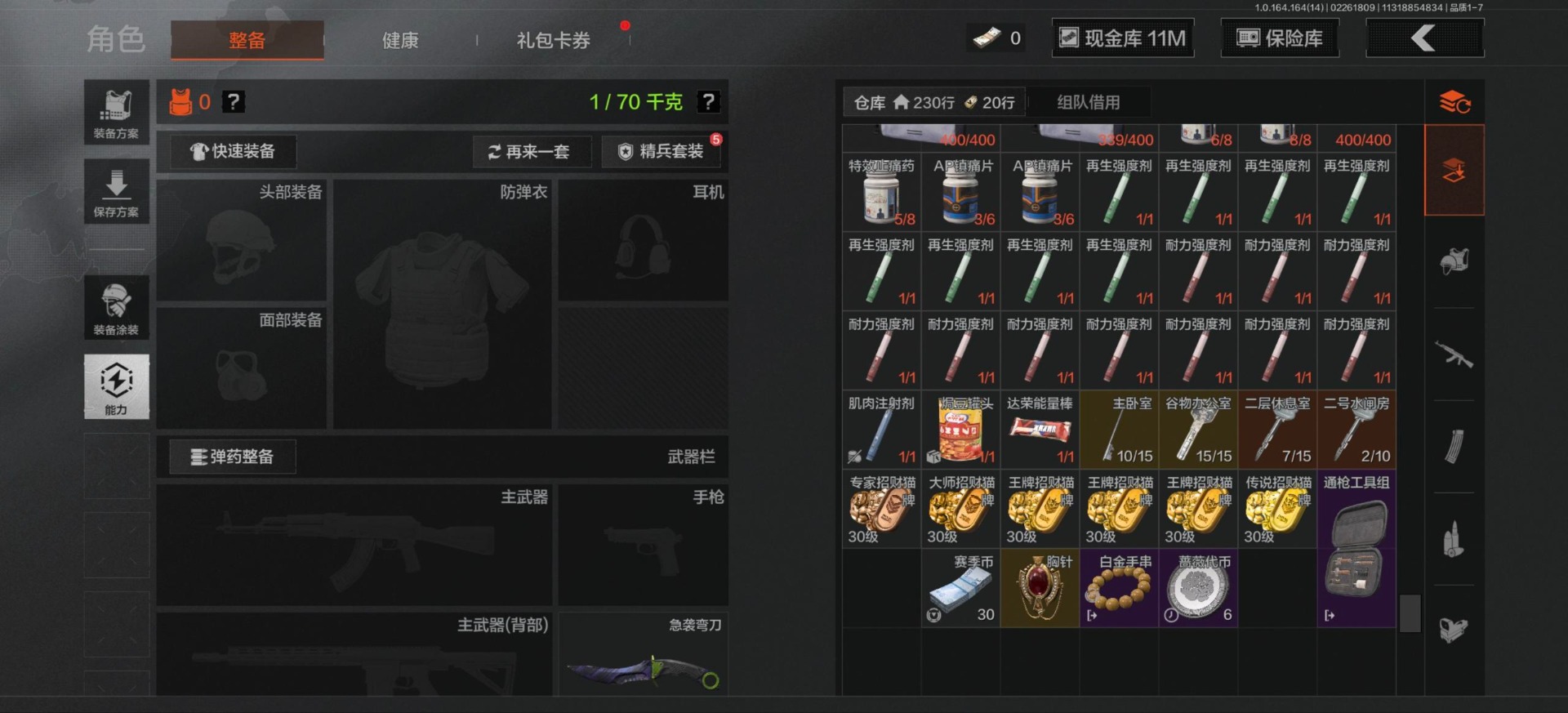 库存价值41.1 4近战武器 2金套装 5金枪皮 可修改实